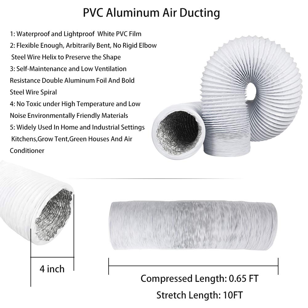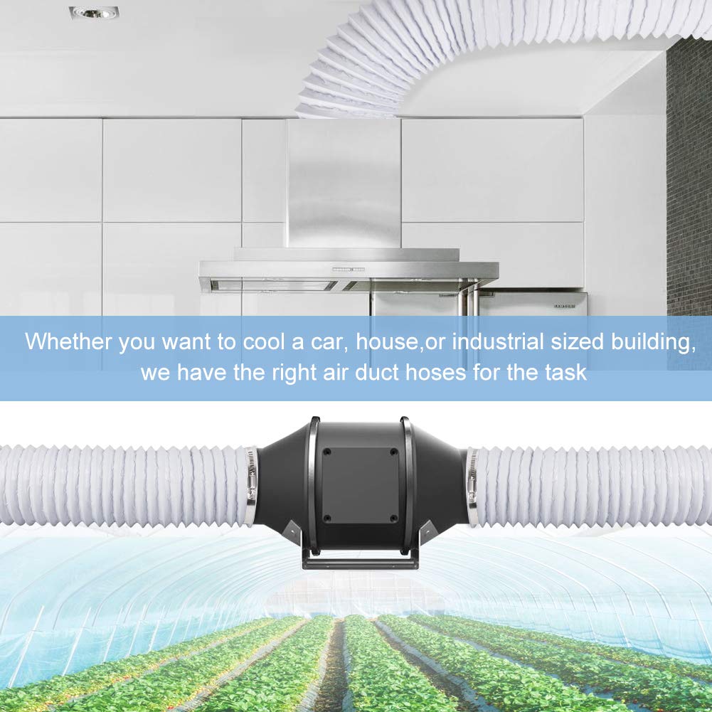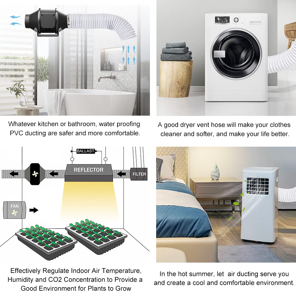 WIDELY USED: The flexible dryer vent hose suits HVAC system. It will move and deliver air in Kitchens (cooking exhaust), Green Houses and Grow Rooms (Air Circulation, Intake, Exhaust and Light Fixture Cooling), Bathrooms (Smell and Moisture Exhaust), Dryer Rooms, Grow Tents and other applications etc.