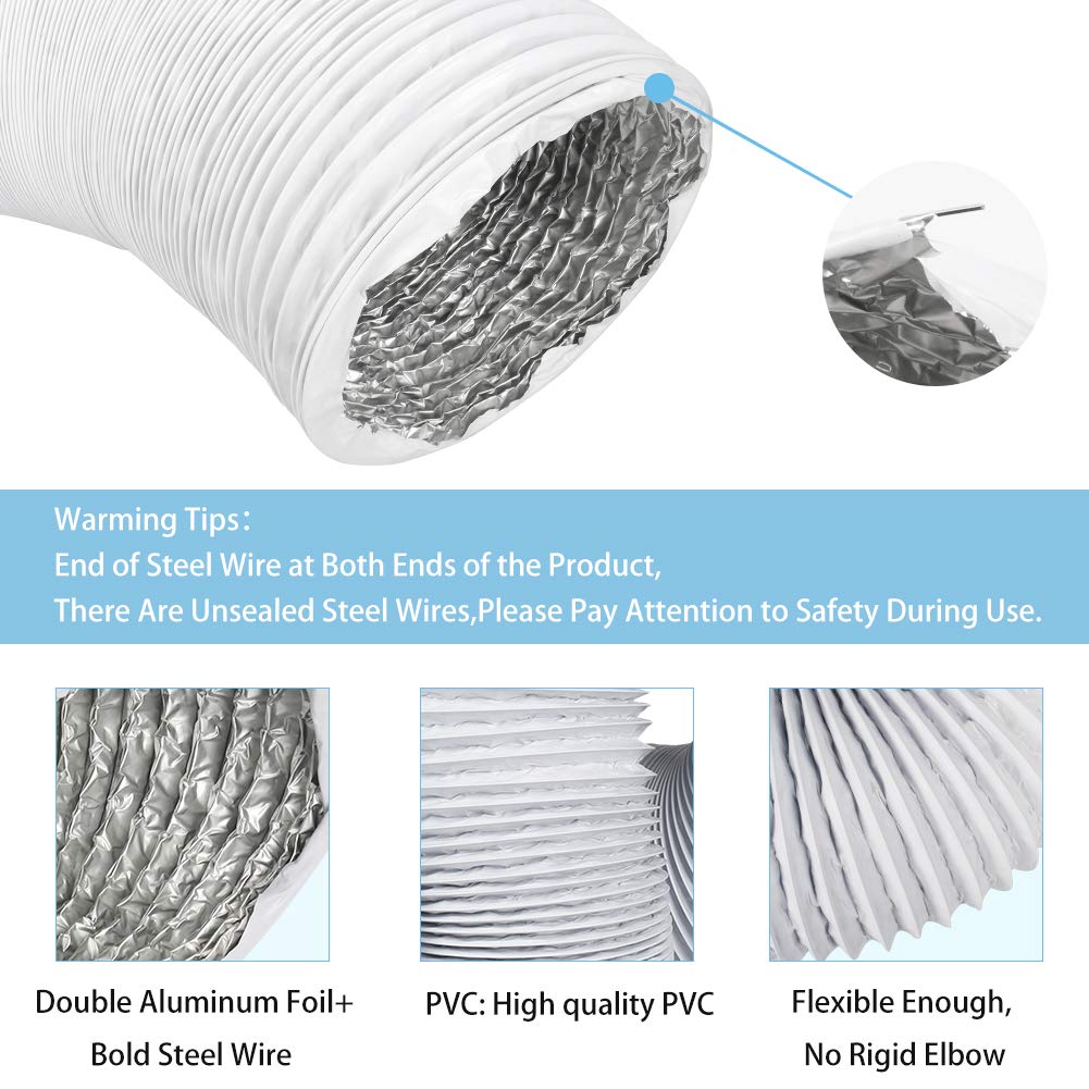 ADVANCED THREE LAYER : Under the PVC layer the dryer duct hose is built with 2 layers of aluminum foil. A layer of durable PET and steel wire helix to preserve the shape, keep your ventilation system free of rips and pin holes.