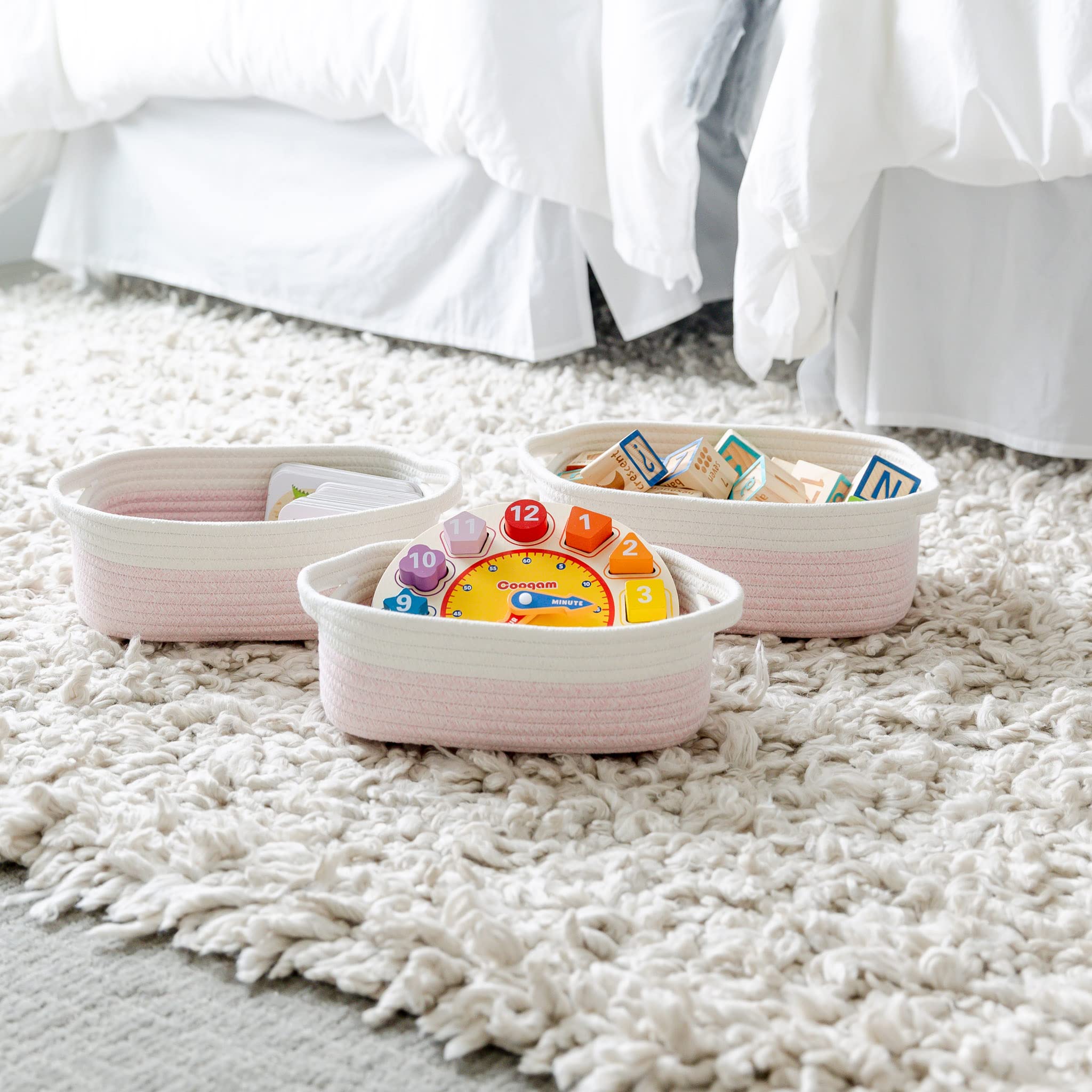 MADE FROM SAFE, NATURAL COTTON: Nom, nom, nom! When you’re revamping the nursery with some seriously stylish toy basket, your little one is bound to turn basket handles into their own personal teethers. No worries, mom! Our woven baskets for storage are made from 100% natural cotton, so they’re completely safe for little mouths and hands. No toxic chemicals or ingredients! Plus, you won’t find a single faux leather anywhere that could be harmful for your little one or your pet.