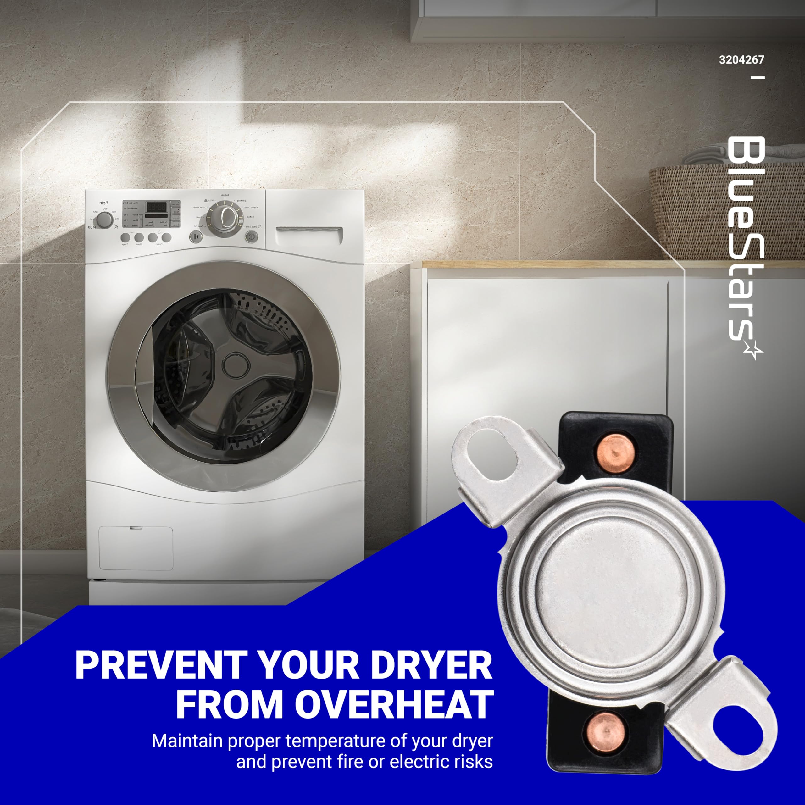 FUNCTIONS: The high limit thermostat 3204267 is used in a dryer and monitors the temperature to make sure it does not exceed 260 degrees Fahrenheit. When your dryer temperature reaches 260 it will cut it out and only comes back when it drops by at least 70 degrees Fahrenheit.