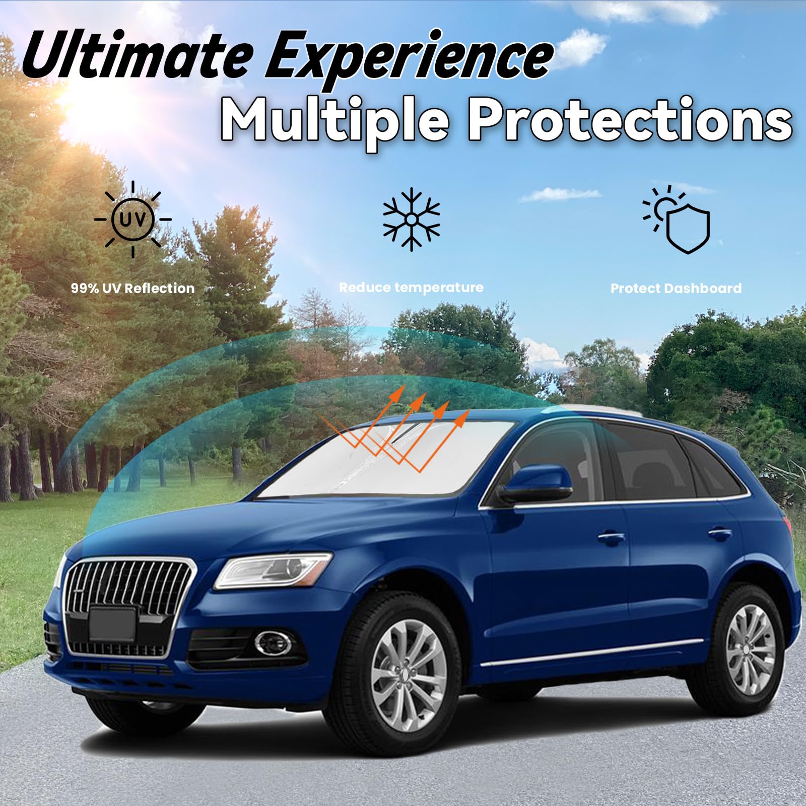 [Custom Precision Fit for Your Audi Q5] Engineered specifically for the Audi Q5 (2014‑2017 models), this sun shade installs effortlessly. It hugs your windshield perfectly with no suction cups needed, and resists sagging or collapsing—making it ideal for both daily use and outdoor camping.