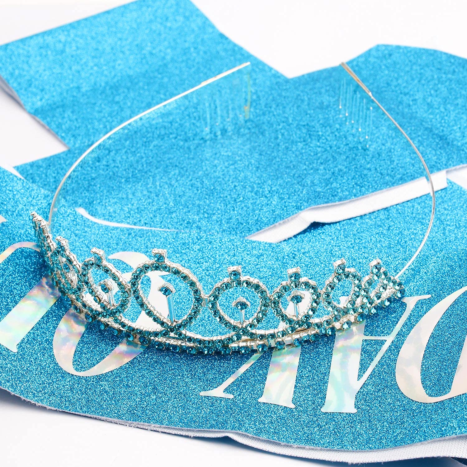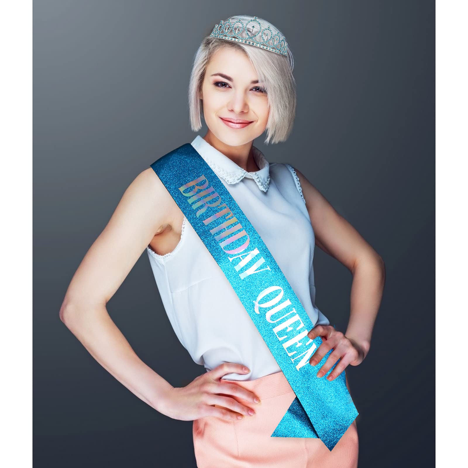 Blue "Birthday Queen" Sash + Rhinestone Tiara Gifts Set.
