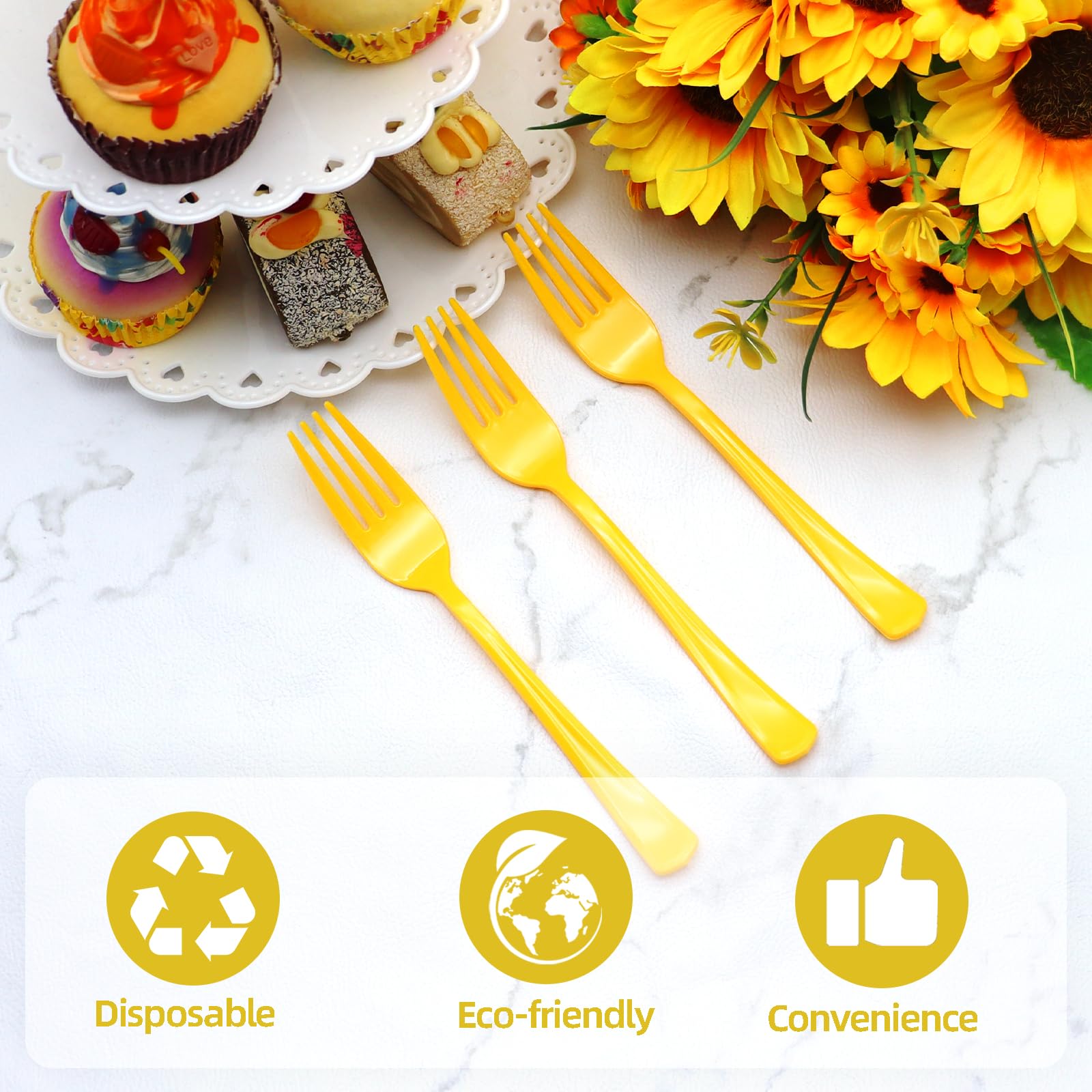 【Widely Used Occasions】: Suitable for a variety of occasions, including birthdays, baby showers, Easter, family gathering parties, picnic camping, etc. Whether for weekday meals or special occasions, these yellow forks can show its unique charm and practicality.