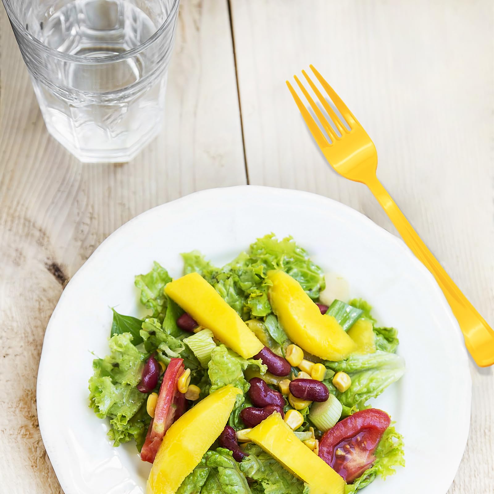 【Premium Disposable Forks】: The plastic silverware is made of food-grade BPA-Free plastic material, which is non-toxic and harmless and can be in direct contact with food. High-temperature resistant and suitable for all types of food, the yellow plastic silverware meets customers' needs.