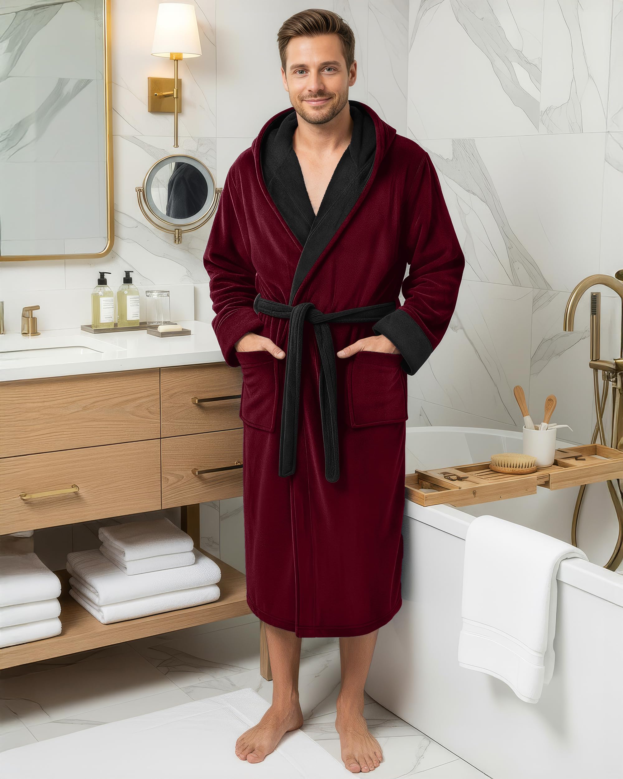 Description Wrap yourself in warmth and comfort with our premium fleece robe for men, designed with a cozy hood for added coverage. This ultra-soft mens robe is perfect for lounging or chilly mornings. Made from high-quality fleece, it delivers both comfort and durability. Whether you’re looking for a classic bath robe, a cozy mens bathrobe, or a functional bathrobe men can count on, this robe has it all. With a secure waist tie and relaxed fit, it offers the perfect blend of style and ease. Elevate your homewear with a robe for men that’s built for everyday comfort.