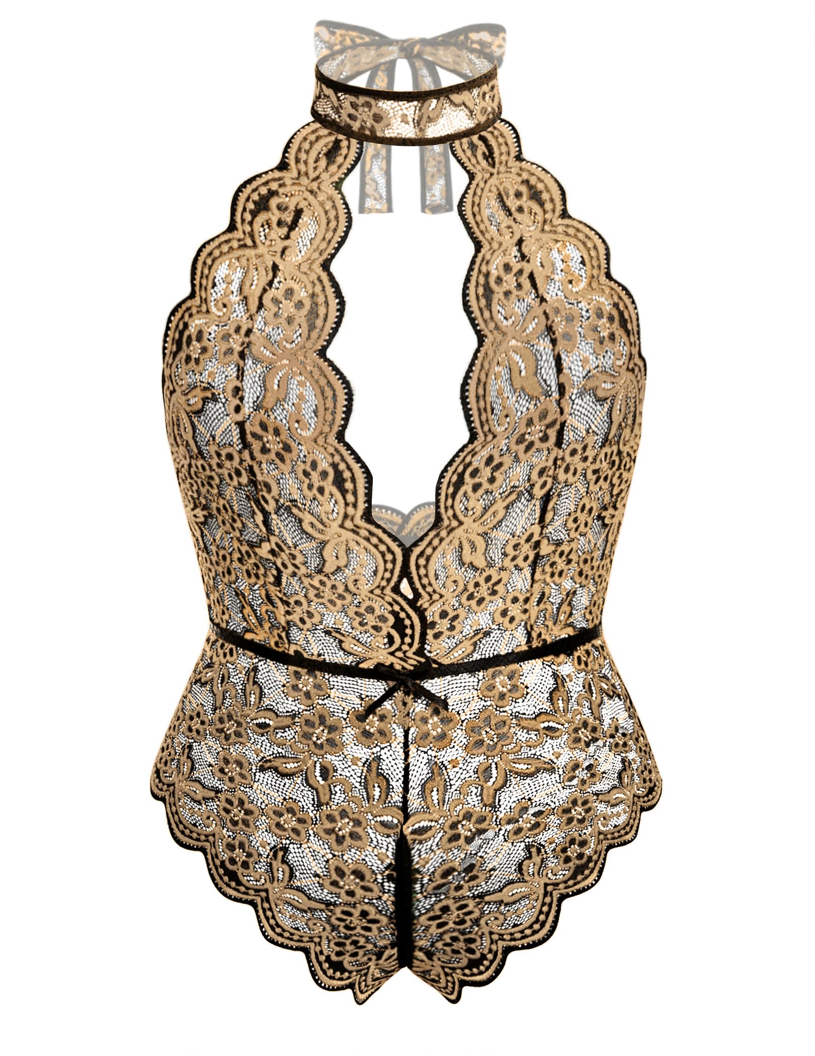 Design:This high neck plus size lingerie romper features high neckline,sheer lace cups with criss-cross detailing, adjustable shoulder straps, an open back with hook back closures, a flutter mesh hem makes you attractive,and the bottom is g-string cut back with has adjustable straps for best fit