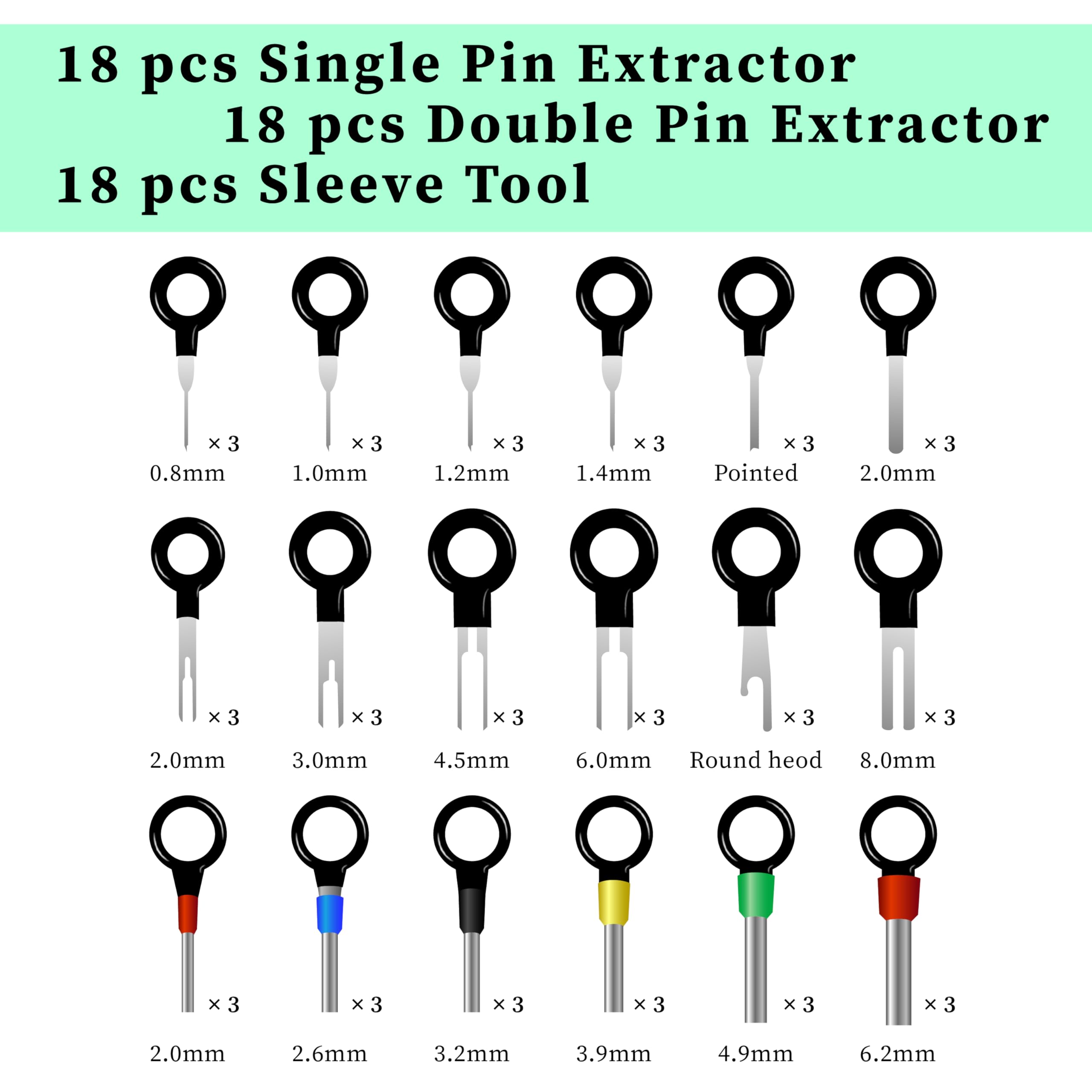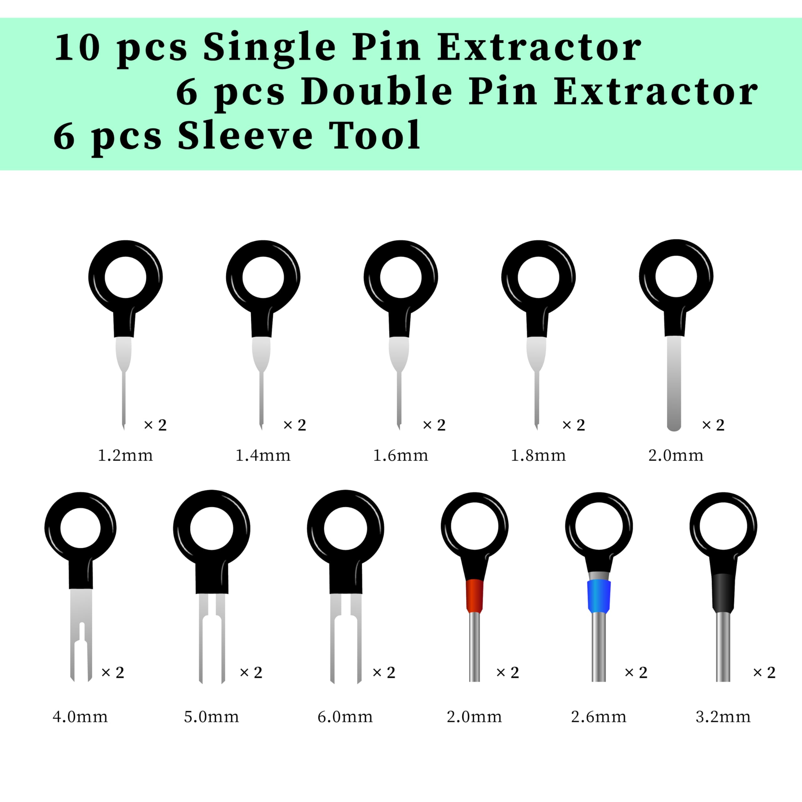 Package Include: 82 PCS electrical pin removal tool kit includes 30 PCS single pin extractor, 28 PCS Double Pin Extractor, 24 PCS casing tool and protective bag (NOTE: Some of the terminal removal tools are duplicate)