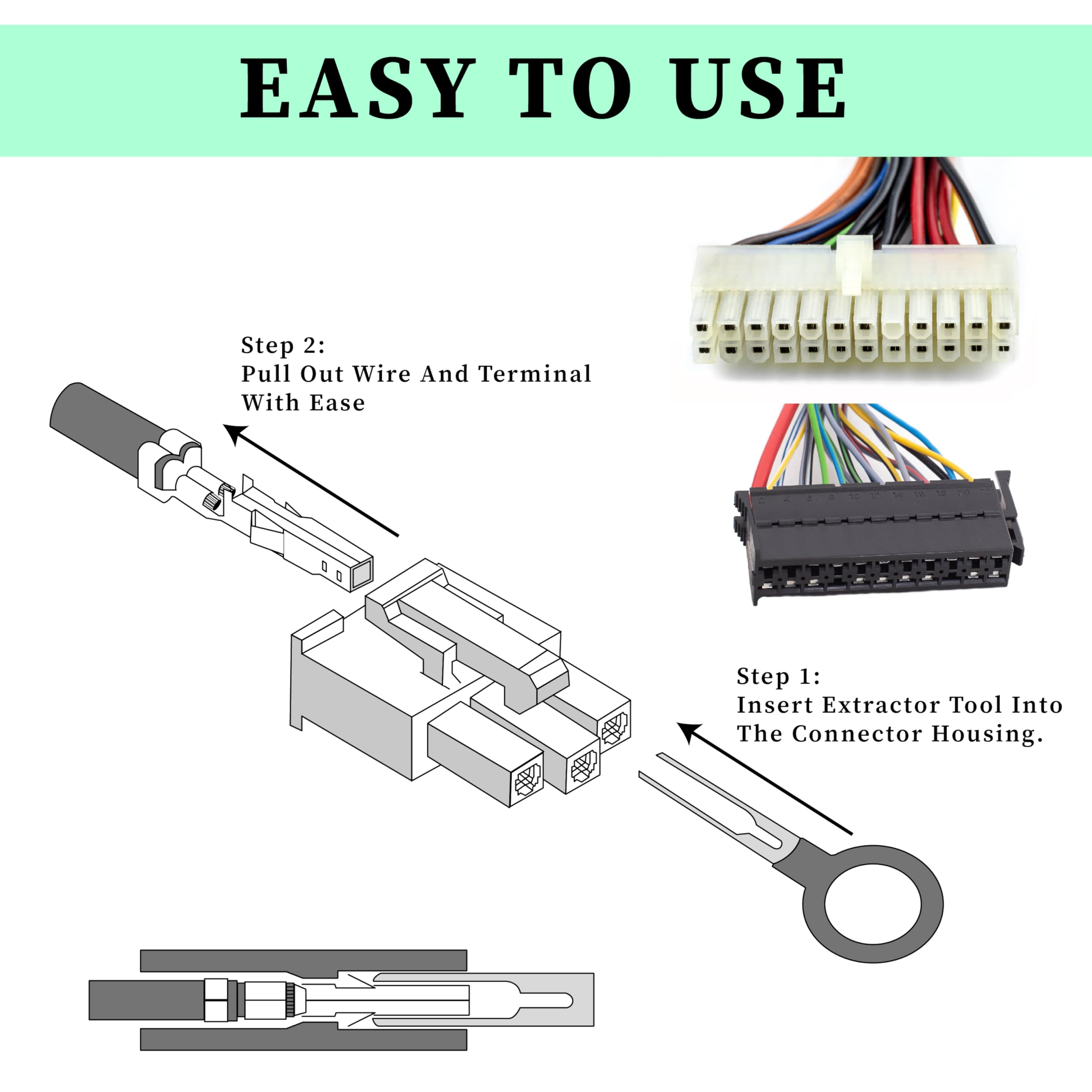 Easy to Use: The depinning tool kit is easy to use, just push and pull the terminal pins with connector removal tool for removal effortlessly from the wire harness connectors without any damage. Kindly Note: Most of the wire harnesses are held in place with barb clips. You can use a tool to lift or flatten the barbs, and then gently pull out the wire ends. Pay special attention to strength and direction