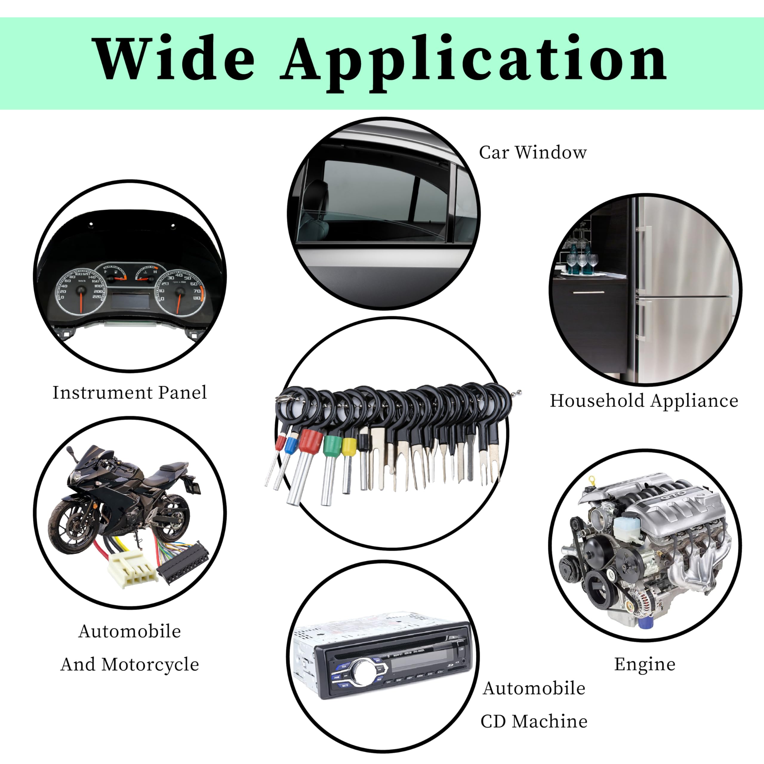 Wide Application: The pins terminals removal tools suitable for most connector terminal which can be used for most cars,truck, motorcycles and other electronic appliance wiring connectors(such as radio, hot tub,charger)