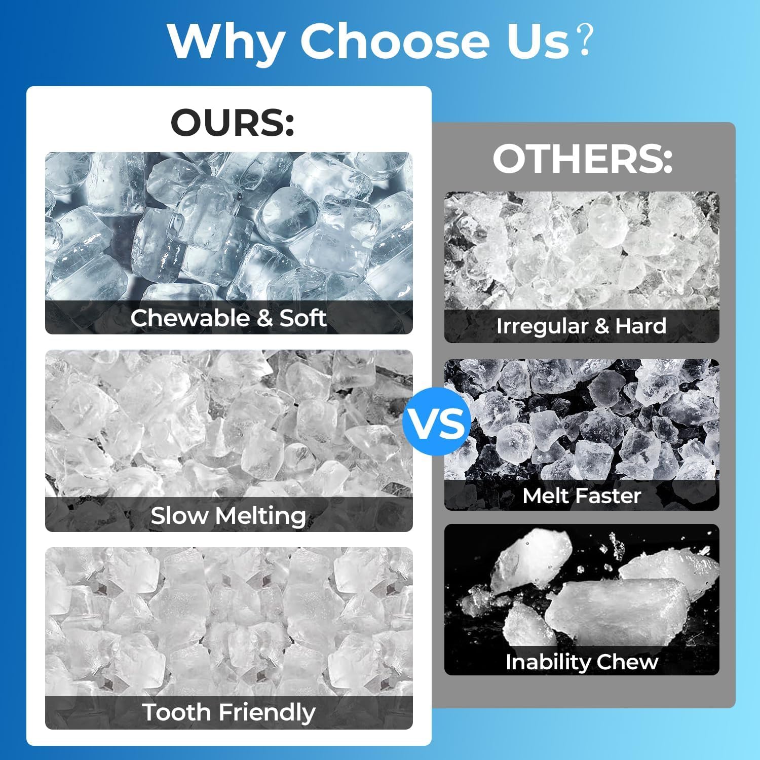 Efficient Ice Making Experience: Make chewable ice with our versatile countertop ice maker. Producing up to 44 pounds of ice per day with a lightning fast 10-15 minute ice-making cycle, it's perfect for parties, drinks and treats.