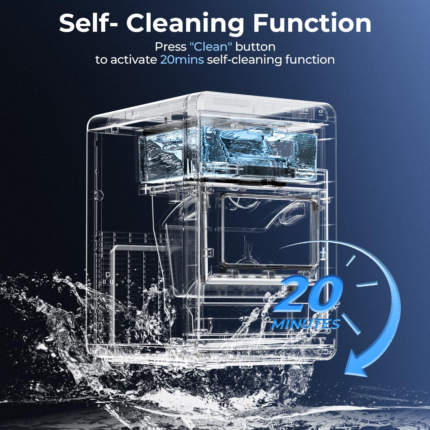 Hygienic 20-Minute Self-Cleaning: Maintain pristine ice quality with the one-touch self-cleaning function that thoroughly sanitizes your portable ice maker countertop in just 20 minutes - no scrubbing or harsh chemicals needed.