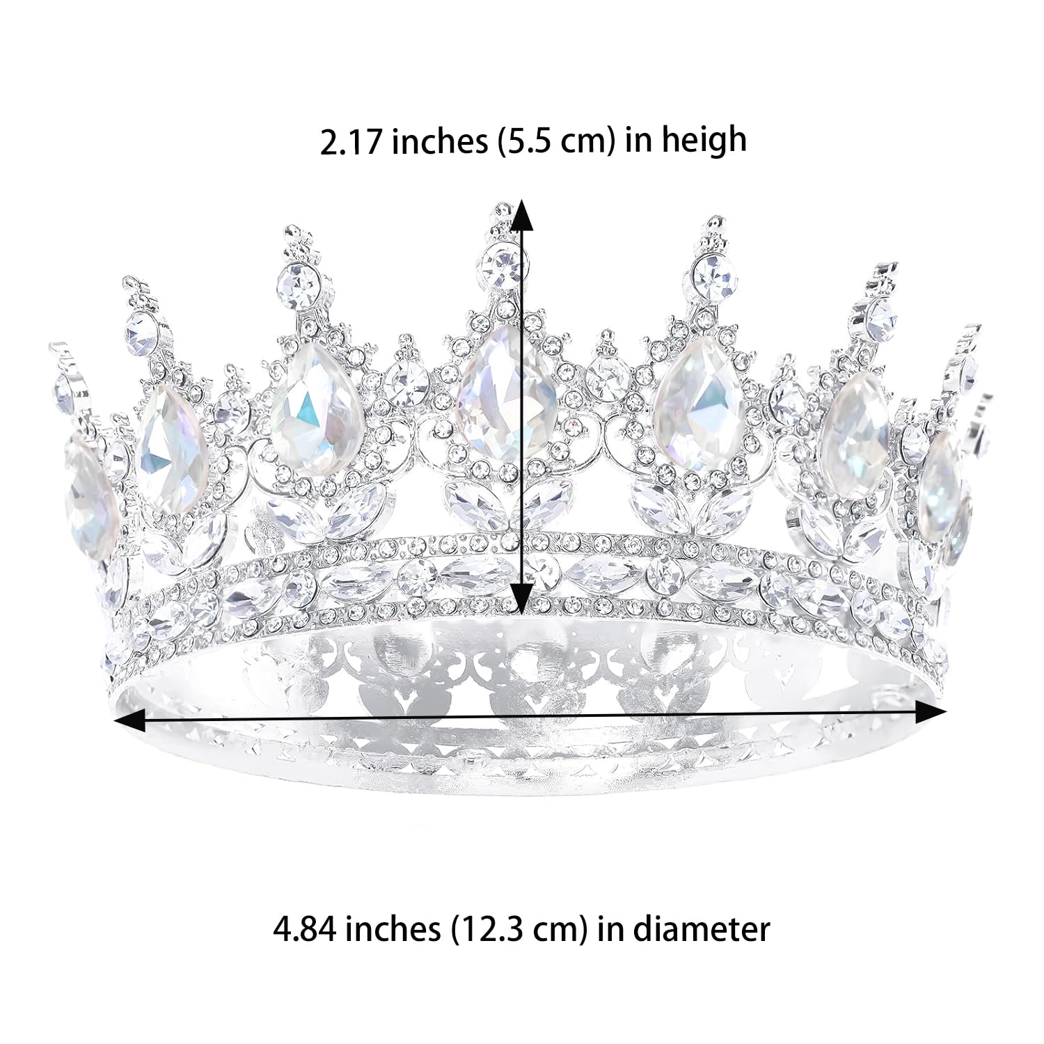 Size and Package: Our tiara crown are suitable for adult women, Diameter about: 4.72 inches, Height about: 2.0 inches, Weight about: 0.344 lb. The package includes four clips to fix the crown on your head and brings you a long and comfortable wearing experience.