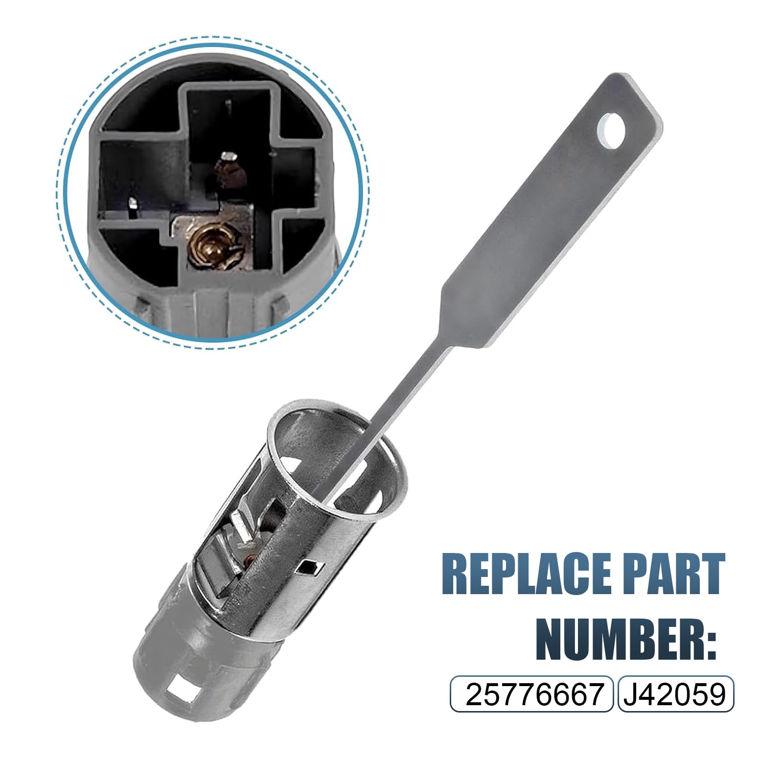 Name: Cigarette Lighter Socket Durable Construction: The cigarette lighter socket features a heat-resistant, melt-proof design, ensuring long-lasting service life despite frequent use. The included removal tool is durable, impact-resistant, and resistant to breakage or deformation. Compatible with replacement part numbers 25776667, J42059, and 25774623. Note: Please check your vehicle model and owner's manual to confirm compatibility before ordering.