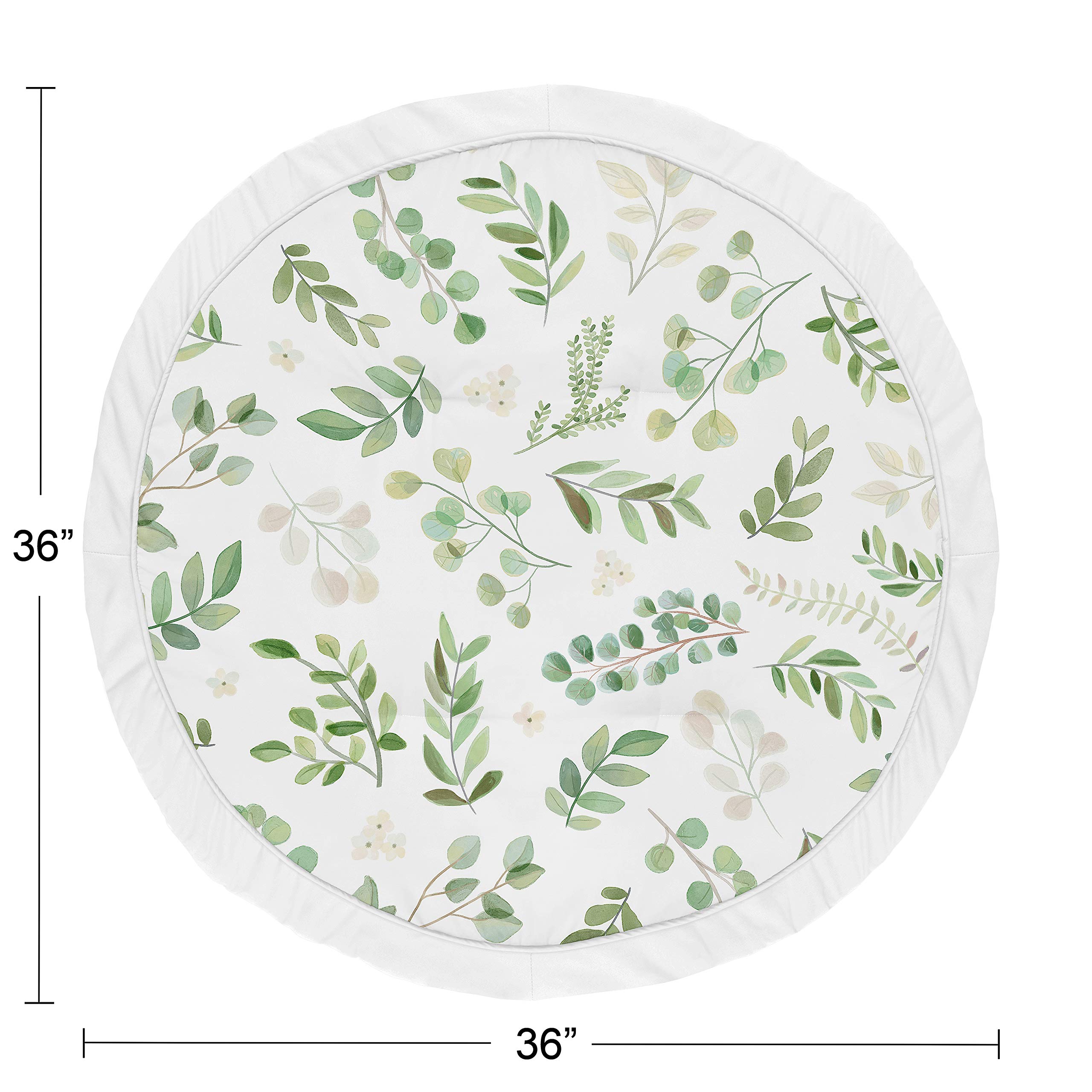 Playmat is designed using a green and white botanical floral leaf print and finished with white piping and border - Brushed Microfiber