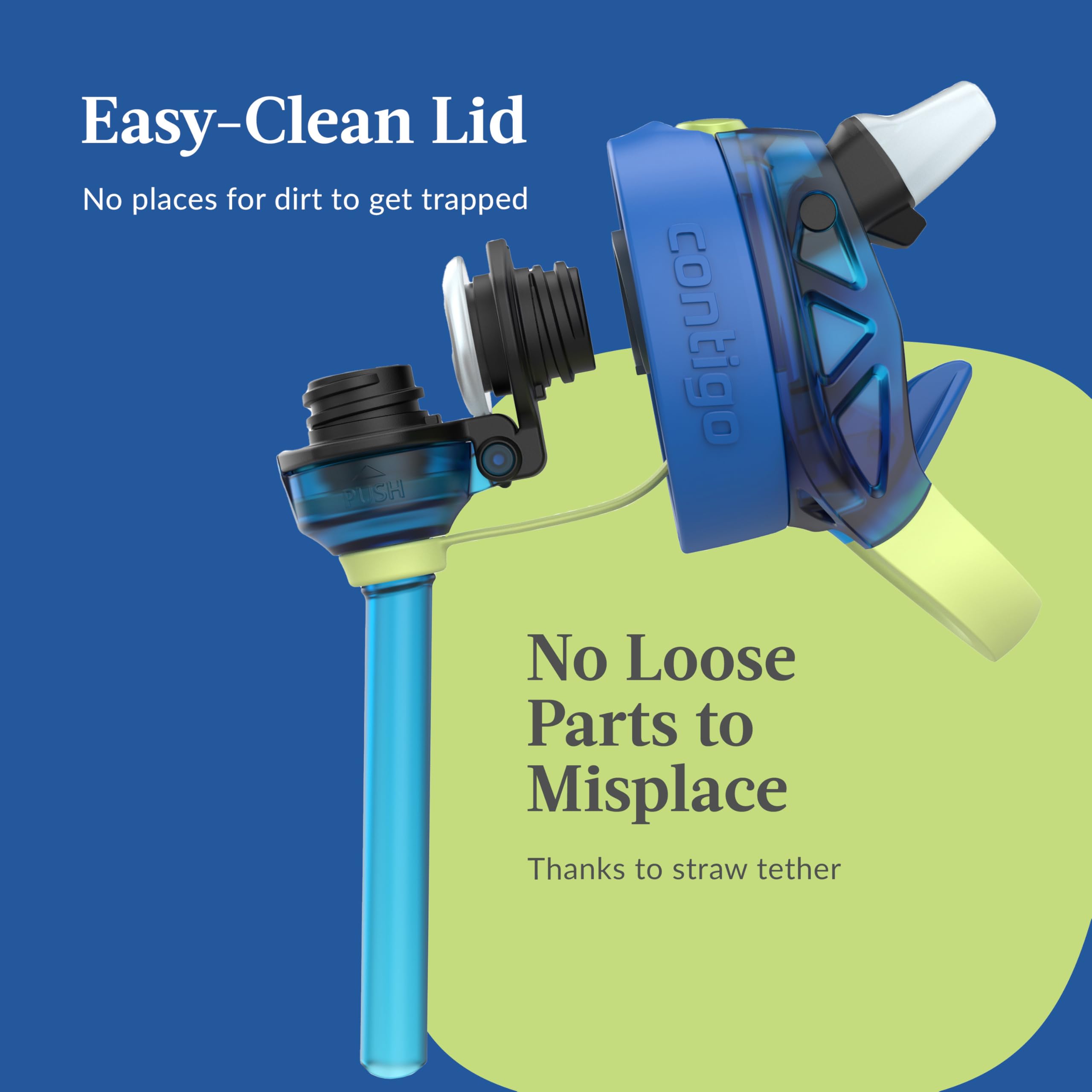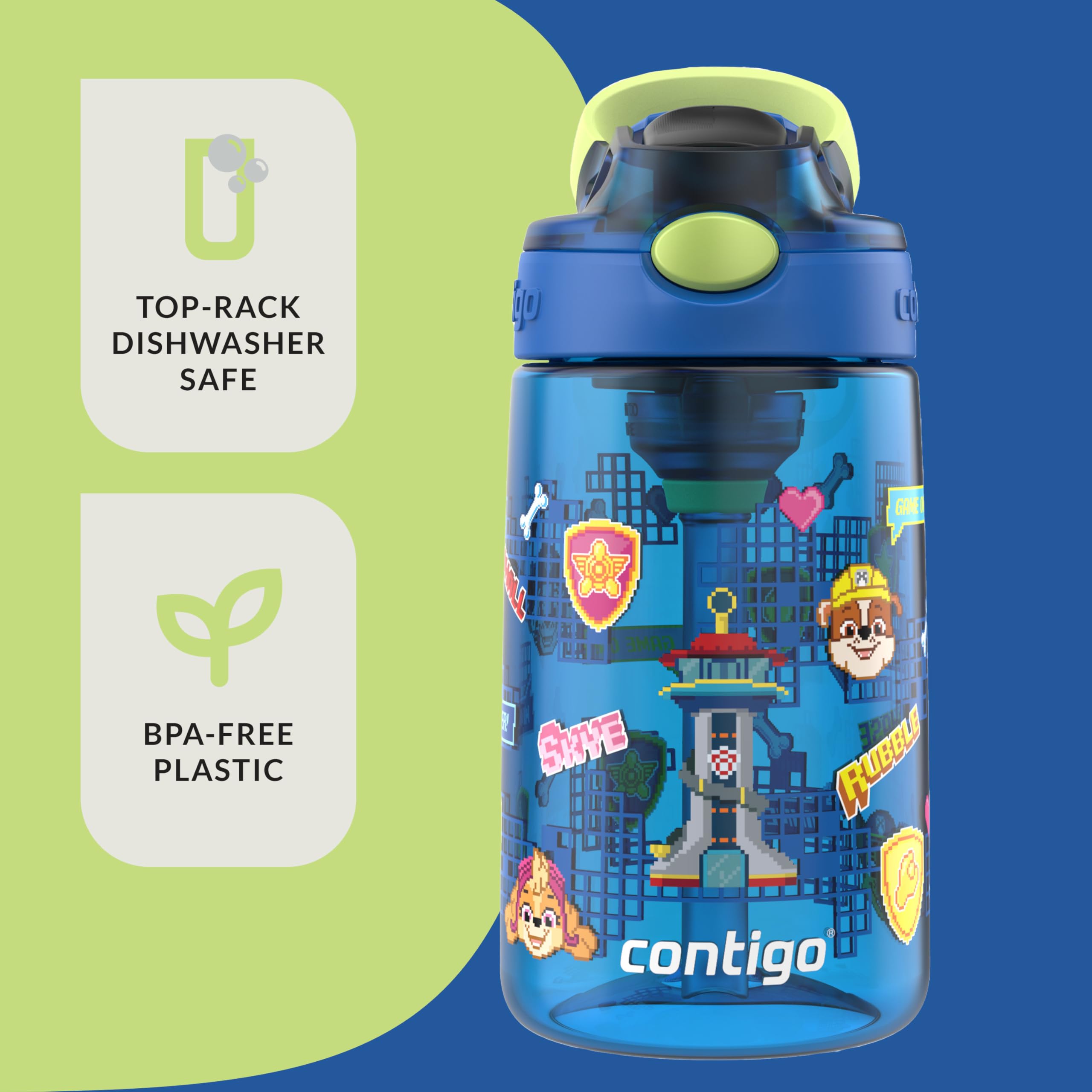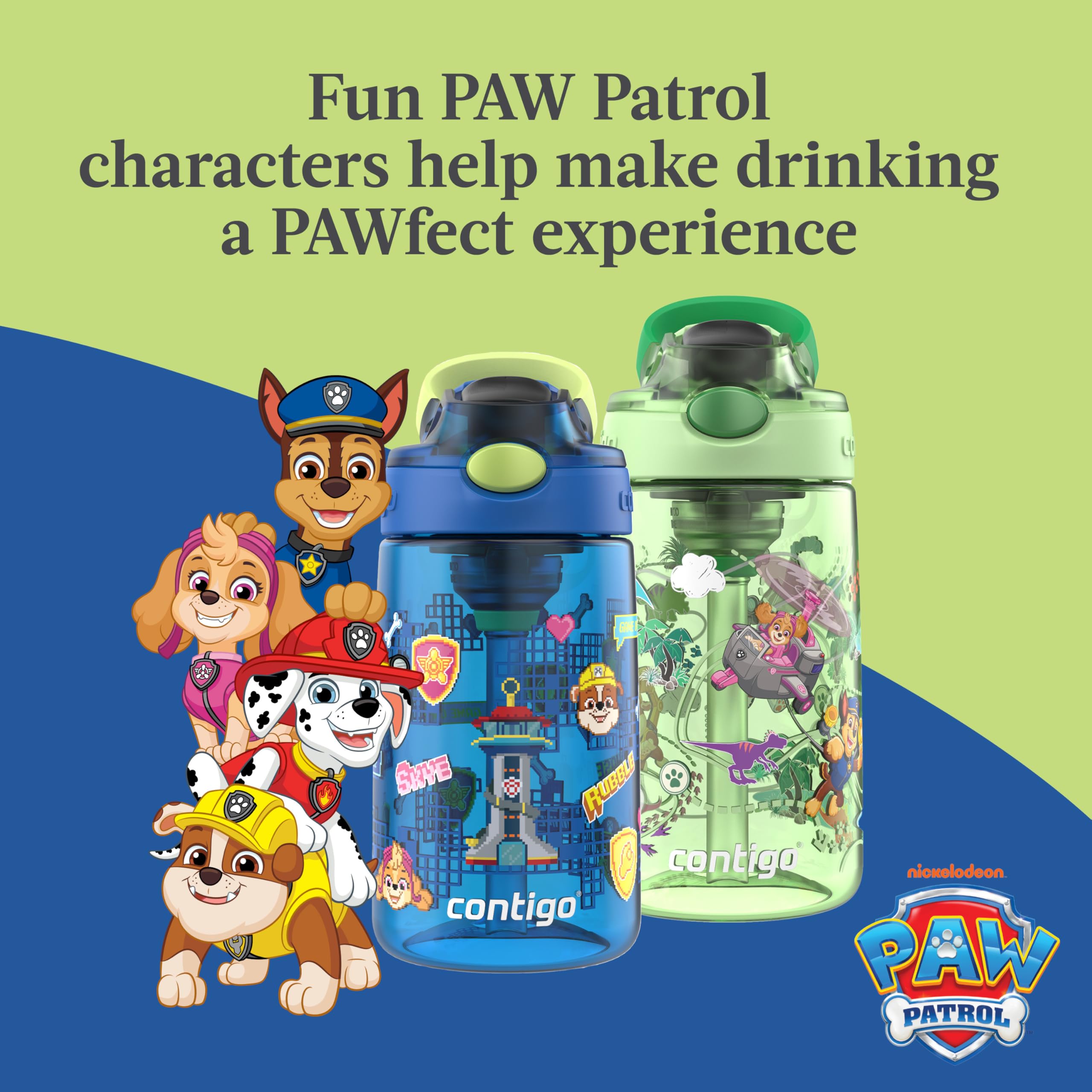 Running on the playground, jumping on the bed, or slaying imaginary dragons, kids are on the go, so help keep them happily hydrated with the Contigo® Aubrey Leak-Proof Spill-Proof Water Bottle with AUTOSPOUT®. This adorably designed water bottle also features characters from the popular Paw Patrol, ensuring a PAWfect drinking experience. Little ones love the colorful look, tactile feel, and cool pop-up features. You’ll love that it makes cleaning up spills one less thing to worry about. This kid-friendly water bottle won’t leak during transport, won’t spill while they’re sipping (even if it’s upside down), and can be used with just one hand. The innovative AUTOSPOUT® lid features a silicone straw that flips up with a touch of a button and folds back inside when not in use, with an easy to carry handle, and a dishwasher safe lid that hinges open for cleaning. For ages 3 and up. Free from BPA, BPS, BPB, BPF, and BPAF. 14oz. size. Limited lifetime guarantee (only applicable in US & Canada.