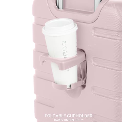 Expandable Carry-On Luggage: Offering 18.25" x 14" x 10" of packing space, this compact rolling suitcase is perfect for any trip. Designed for convenience, it features a fold-out cup holder and an overall size of just 22" x 14.25" x 10", providing ample storage without unnecessary bulk.