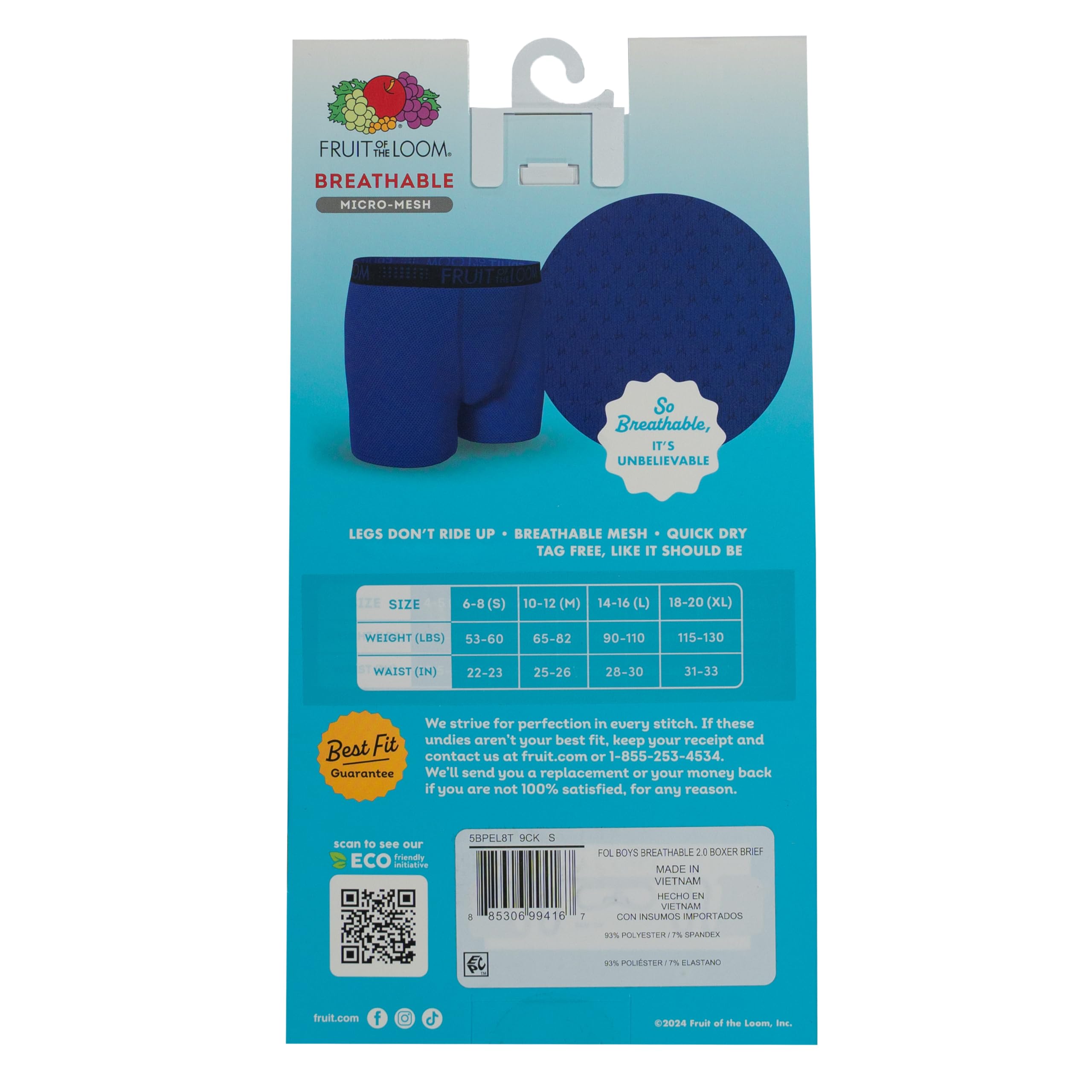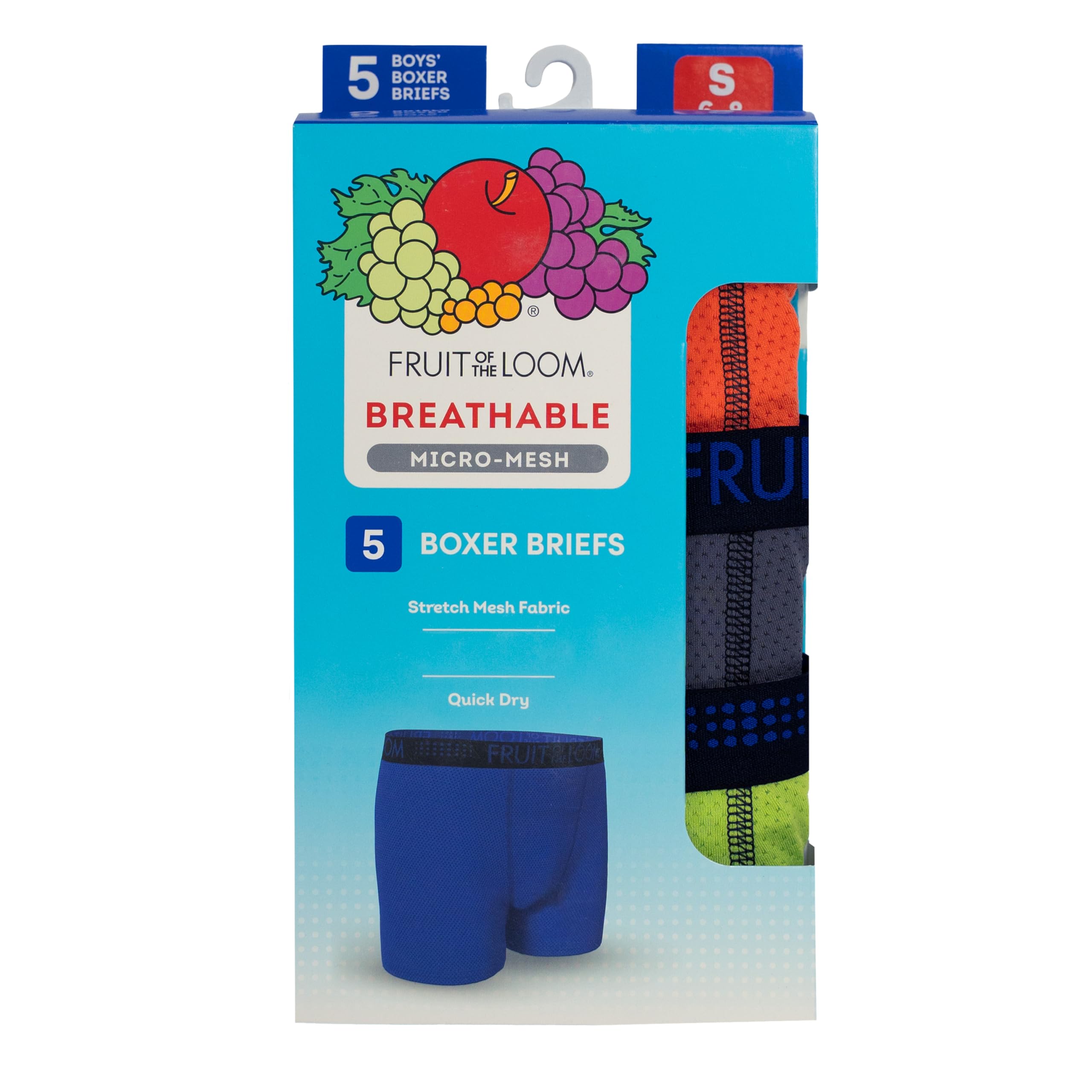 Description Fruit of the Loom breathable briefs feature soft cotton-blend mesh fabric that promotes air flow preventing your song from getting hot. Moisture wicking technology distributes sweat away from the skin, keeping him dry throughout the day. These briefs have a traditional fly design with reinforced seams for better support. A soft, tag free waistband feels soft against the skin.