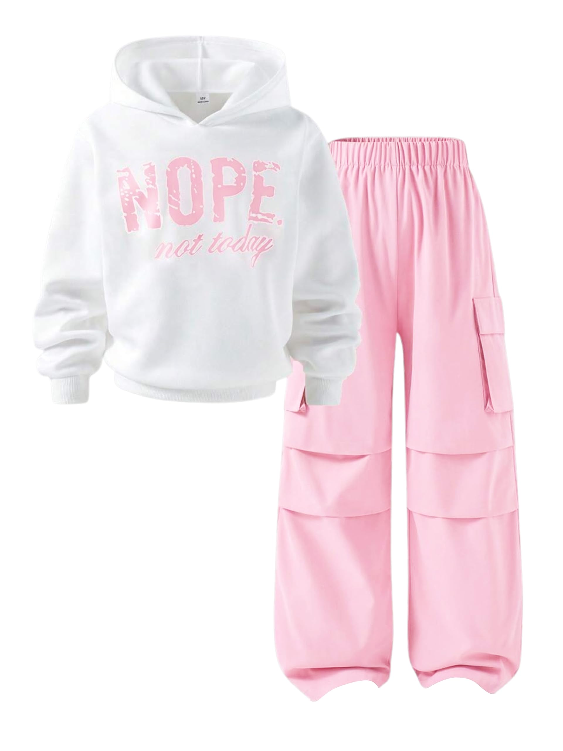 Design: This outfit boasts a sporty color blocking design that's trendy and eye-catching. The sweatshirt comes with a V-neck, adding a touch of chic to the look, and features numeral prints that are fun and stylish. The cargo pants are practical with functional pockets, perfect for holding small essentials like hair ties or candy, combining fashion with daily usability.​