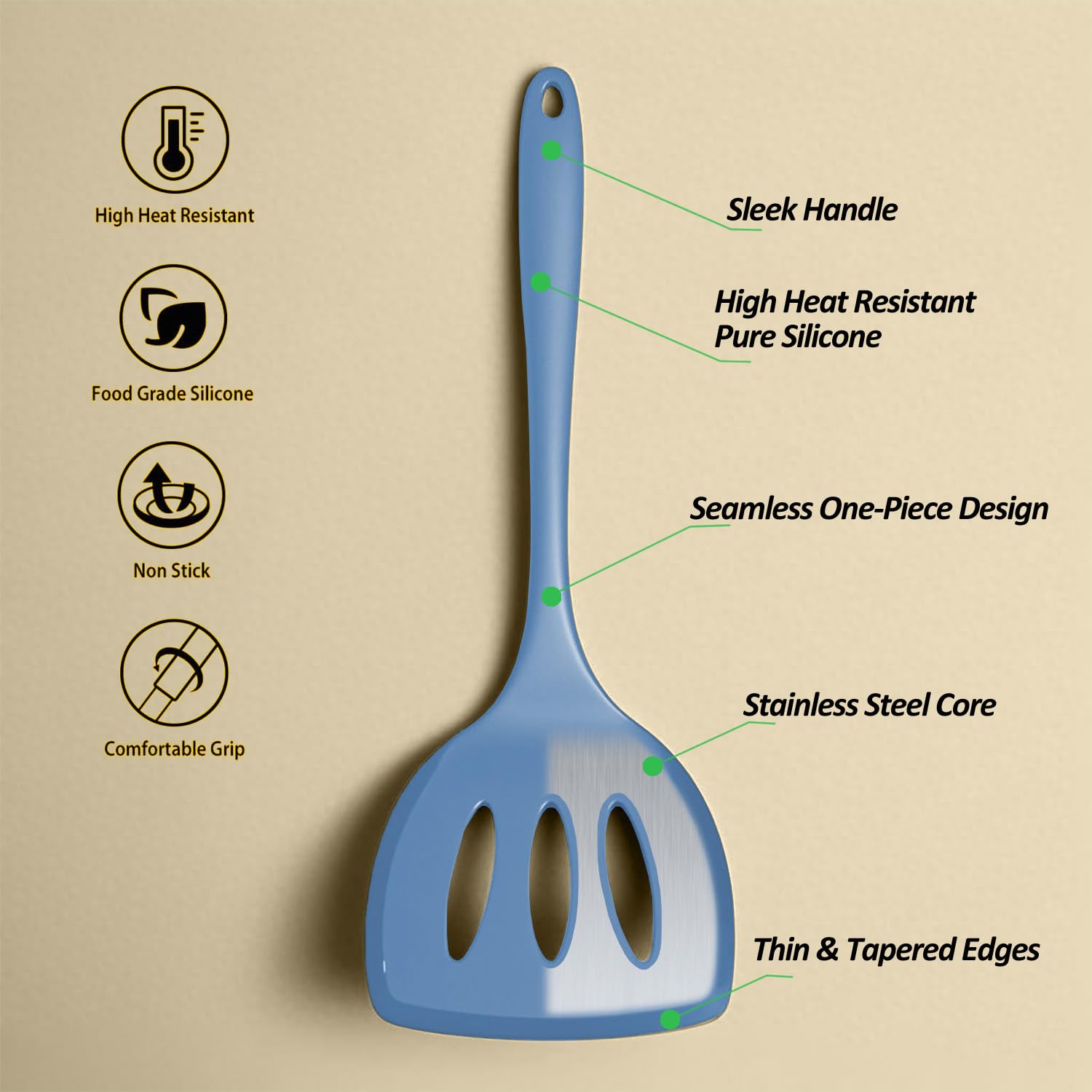 SAFE & HEALTHY: This silicone spatula turner is made of 100 percent food grade silicone, will not retain odors or colors and is resistant to staining, ensuring the health of your family members.