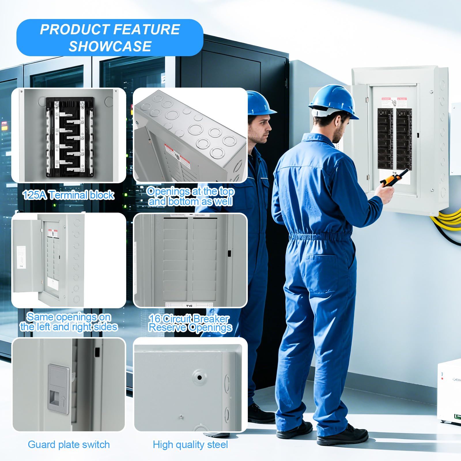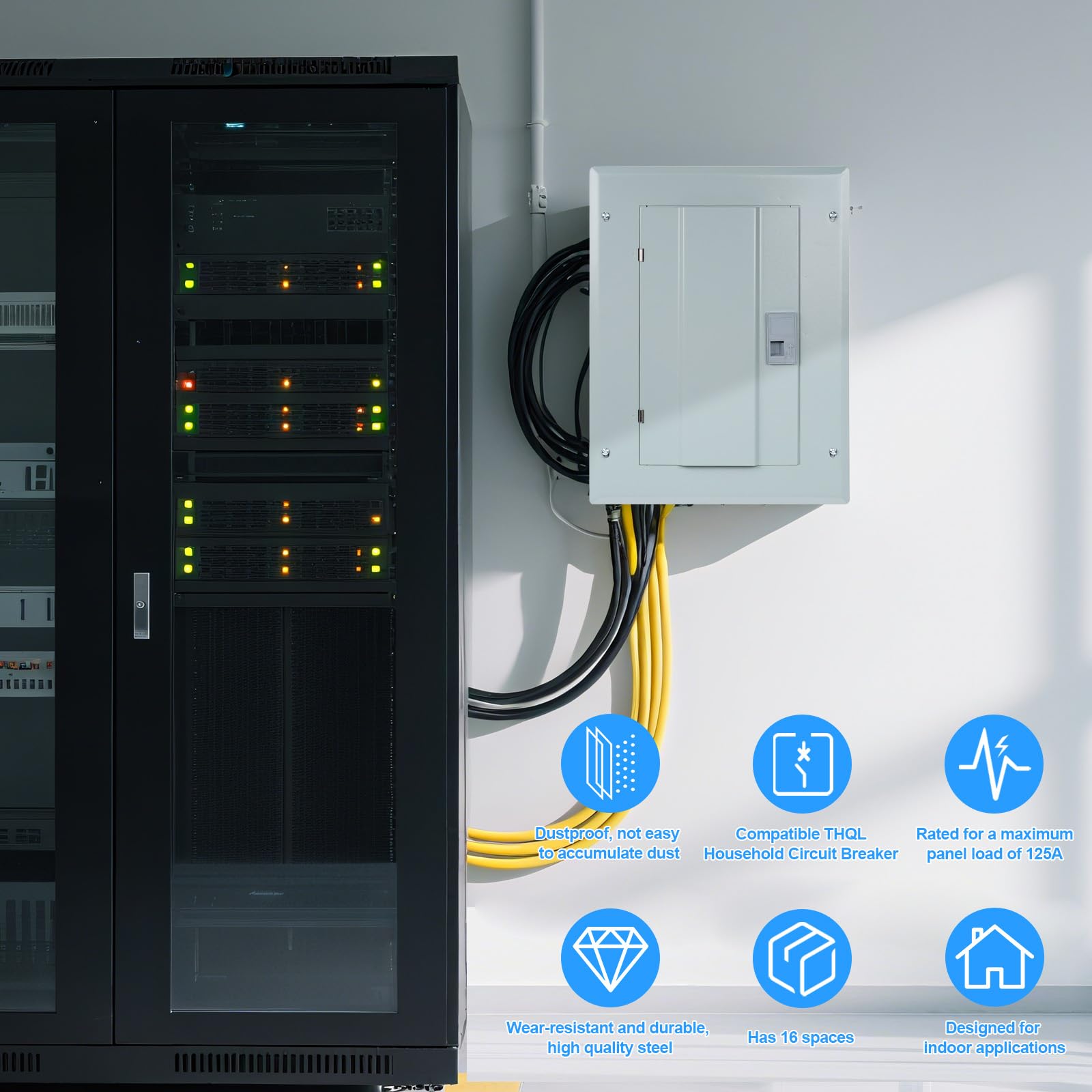 EXCELLENT SAFETY AND PROTECTION - The circuit breaker panel has 16 spaces that can accommodate up to 16 1-pole plug-in circuit breakers. Can provide excellent circuit protection. This makes the main load center a reliable choice for strengthening safety measures in the distribution system.