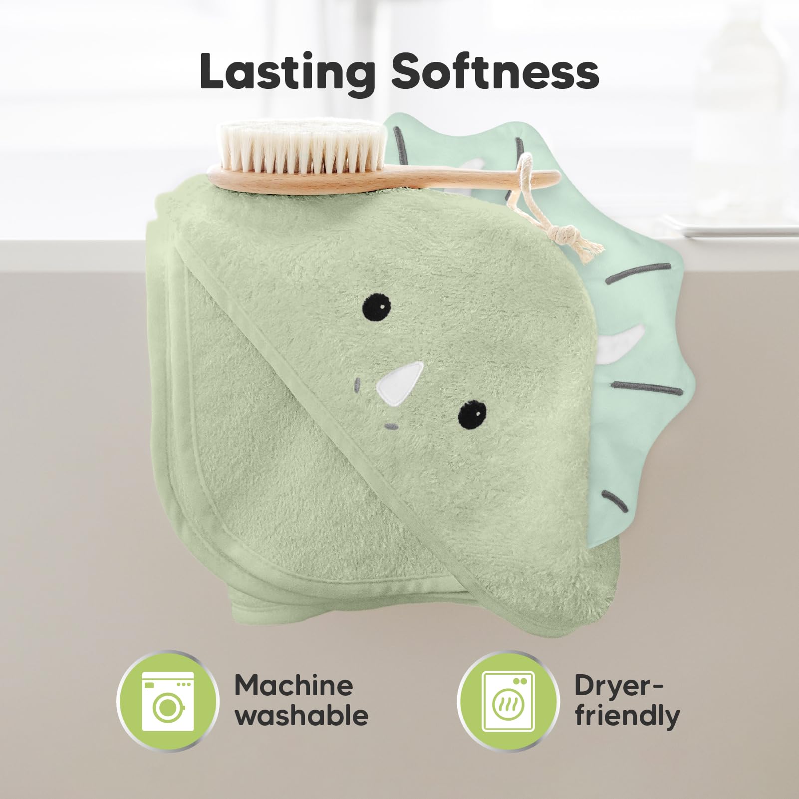 Three Times the Absorbency – Made of viscose derived from bamboo, our baby towel absorbs water three times faster than cotton baby towels, keeping baby dry and clean quickly. Machine washable and dryer-friendly, it's a must-have baby bath essential.