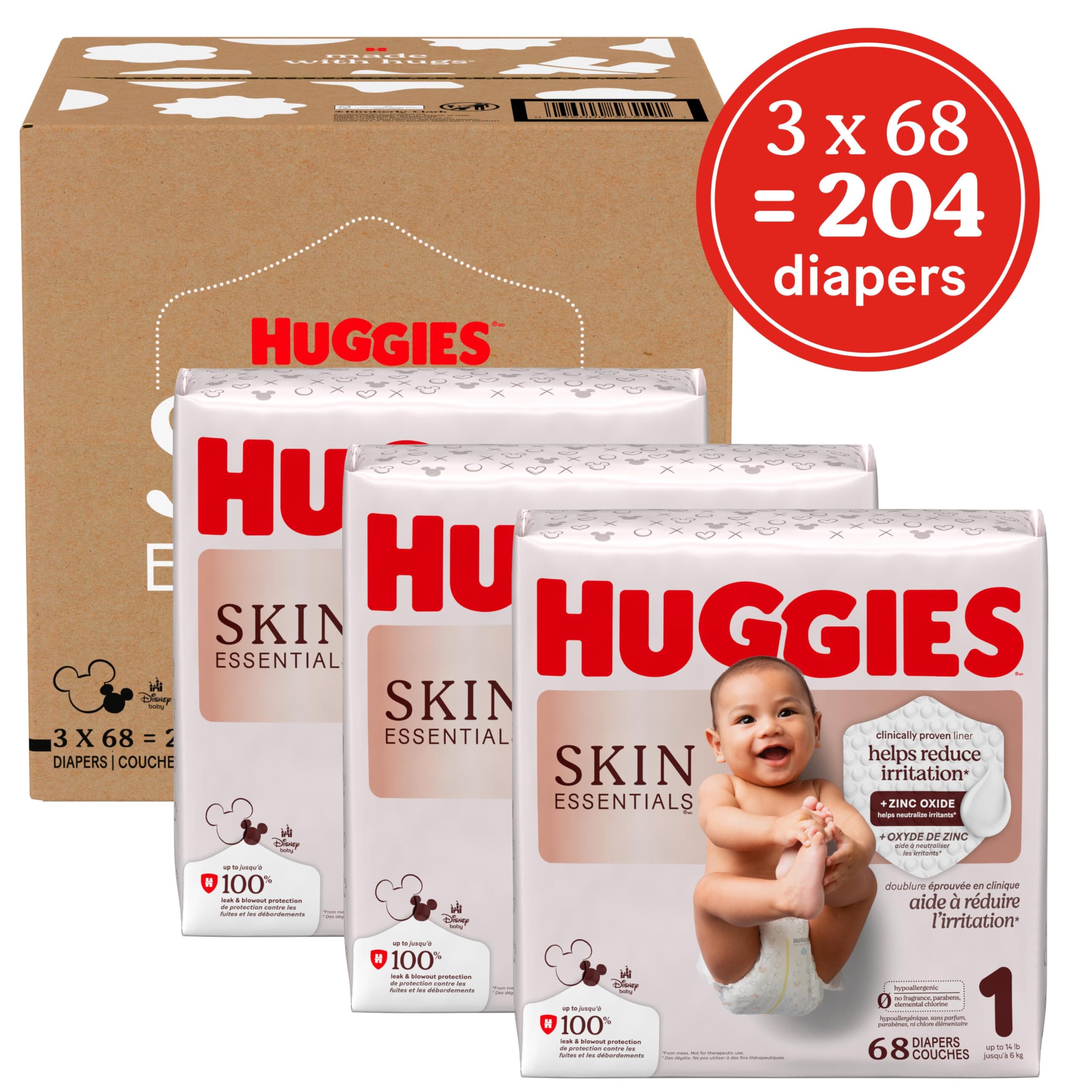 Huggies Size 1 Diapers: 204 Huggies Skin Essentials Newborn Diapers (3 Packs of 68), Size 1 (8-14 lbs); packaging may vary