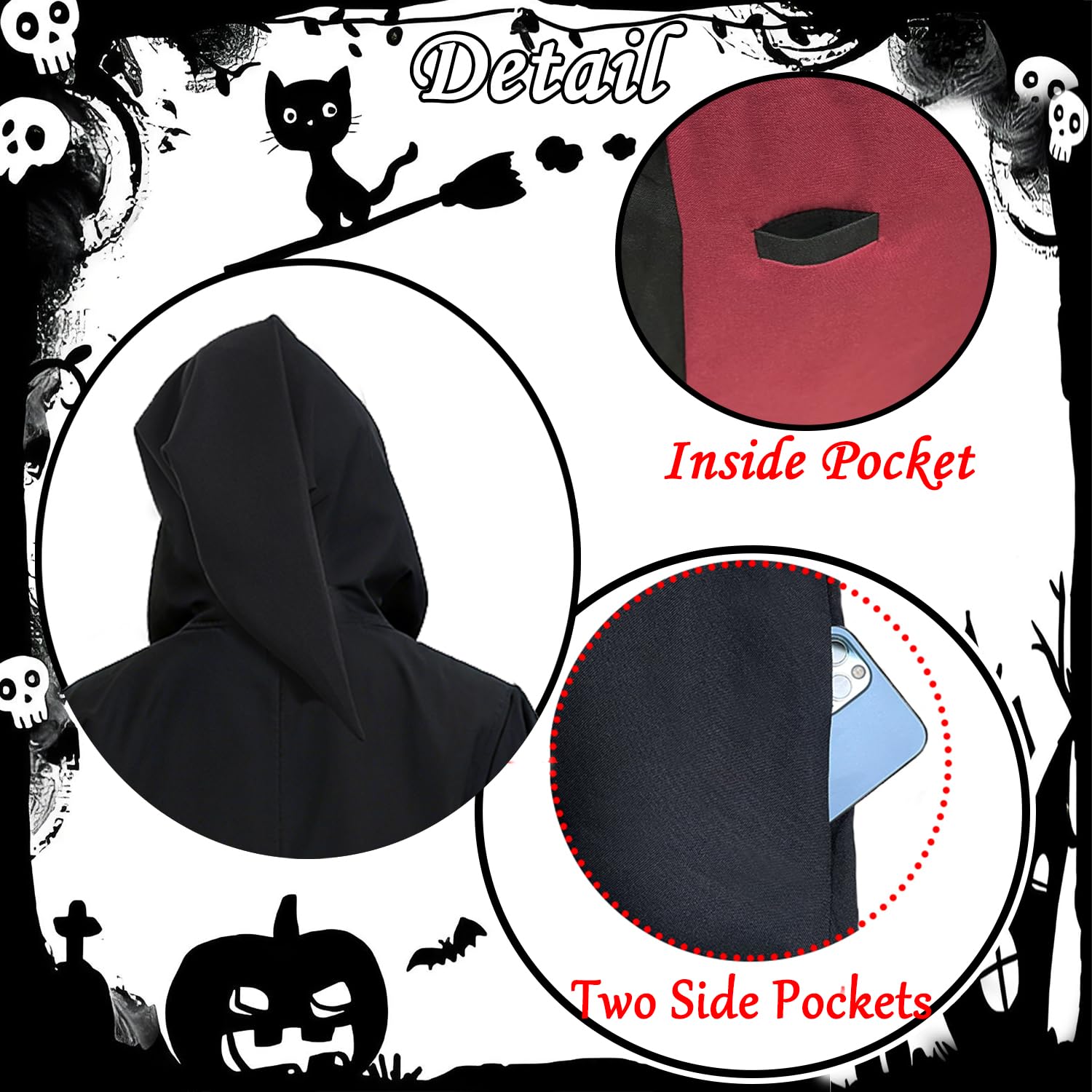 ★Design:-- Designed with the four style robe, Simple and stylish. Perfect for any witch, sorceress, gothic, vampire or any halloween/Christmas themed party or adult fancy dress costume,used for both female and male. Welcome to join and enjoy your funy party.