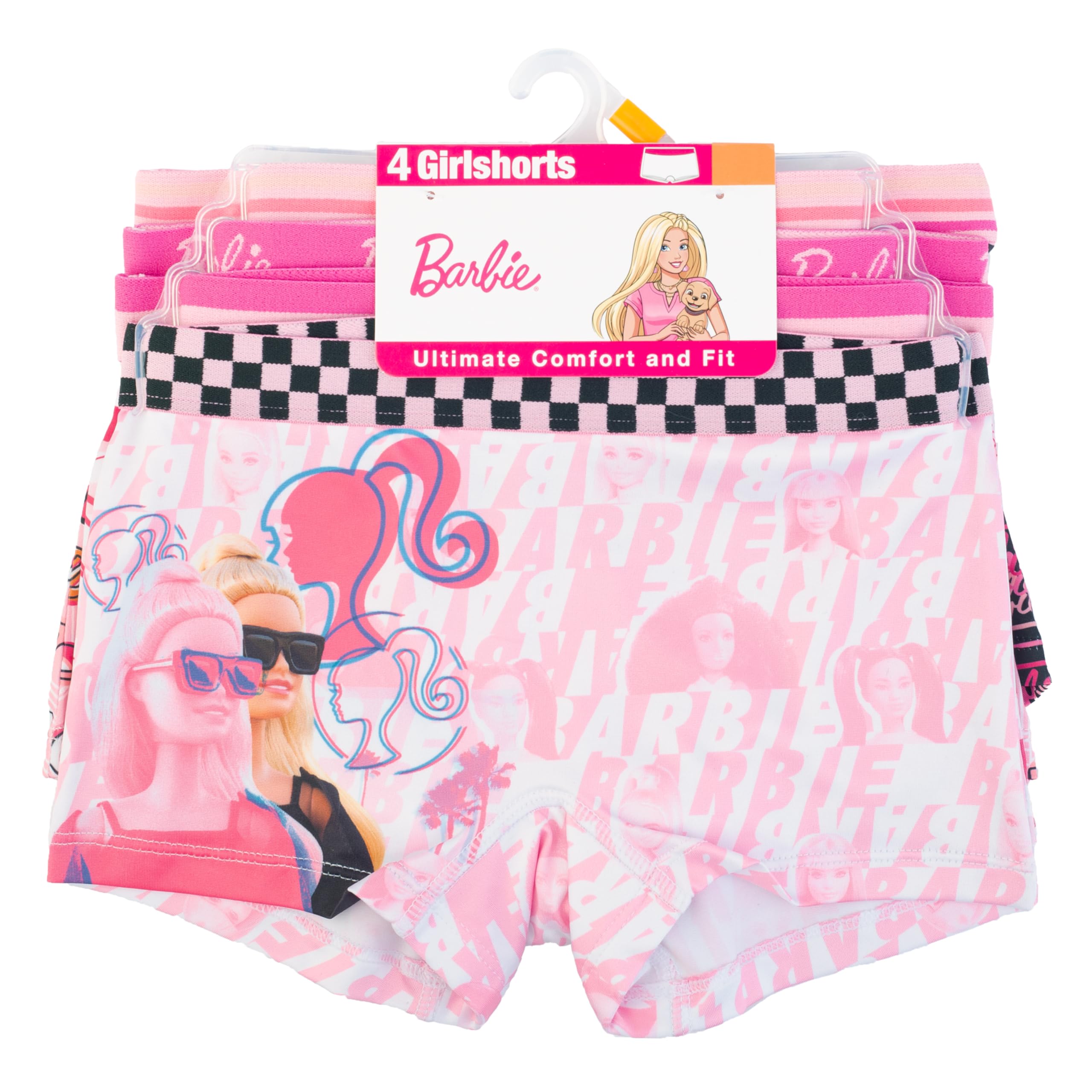 Description Celebrate every stage of her journey with the Barbie Girls’ Underwear Collection, a playful and empowering assortment available in three exciting formats. Choose from a classic 10-pack of 100% combed cotton panties with bold Barbie graphics, a 4-pack of athletic-style girl shorts made from a soft poly blend with a cotton gusset for active comfort, or a magical 12-pack advent calendar surprise box styled like Barbie’s iconic Dreamhouse. From everyday essentials to training time triumphs, this Amazon exclusive set is crafted with tagless interiors, brushed waistbands, and fun, colorful artwork of the world's most iconic doll. The Dreamhouse surprise box even includes a potty training chart and success stickers to keep the journey upbeat and rewarding. Whether she's just learning or already leading her world with Barbie flair, this collection helps every girl feel confident, comfy, and inspired—one stylish pair at a time.