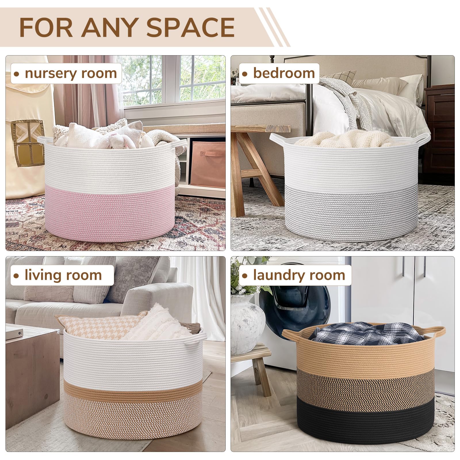 Versatile Use. Perfect for laundry hampers, toy storage, and blanket storage, this basket is suitable for living rooms, bedrooms, nurseries, and laundry rooms.