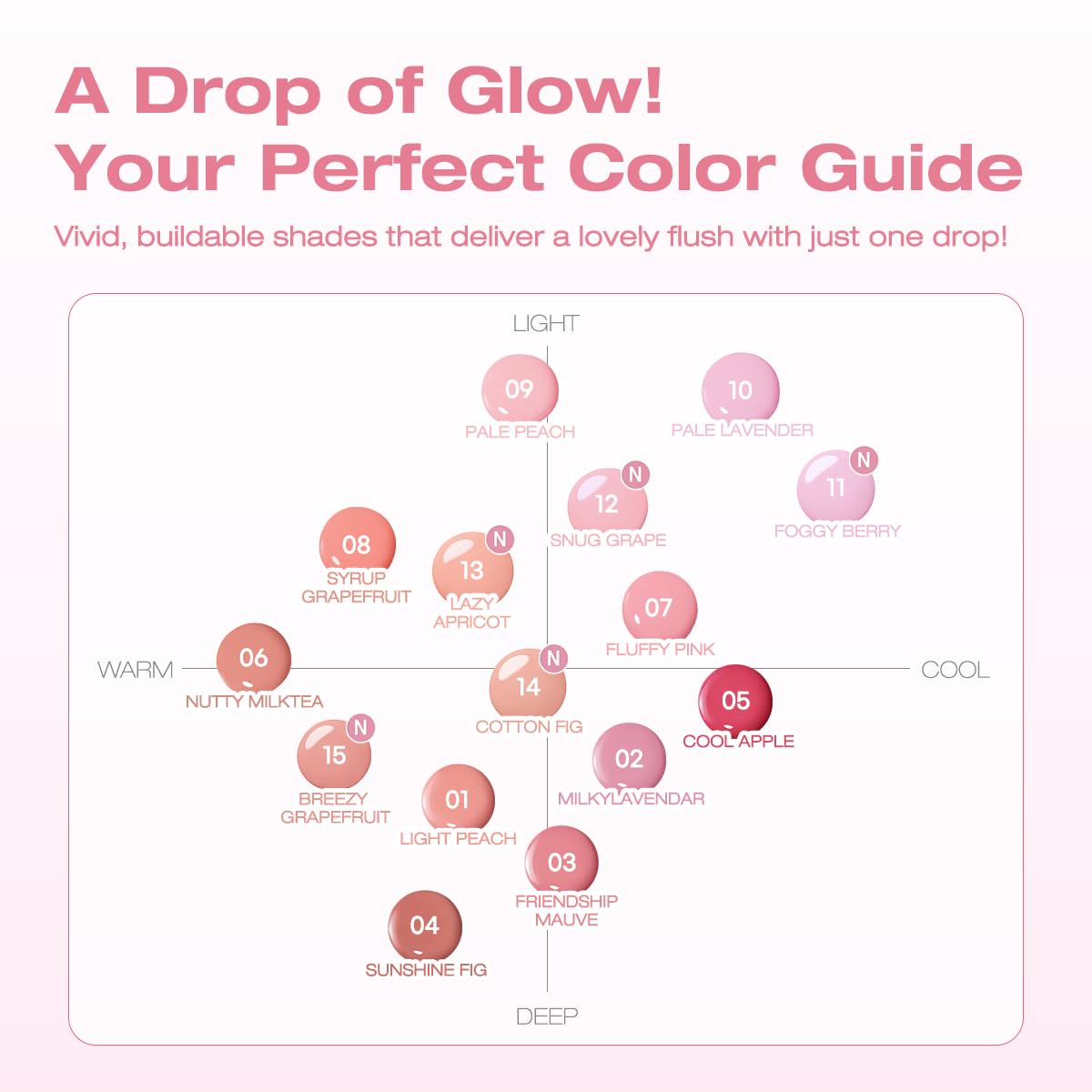 [SYRUPY GLOW FINISH] Achieve a dewy, syrup-like glow on your cheeks with just a single drop! This glowy liquid blush blends seamlessly, leaving your skin looking fresh, luminous, and naturally flushed. Apply effortlessly with your fingers or a brush!