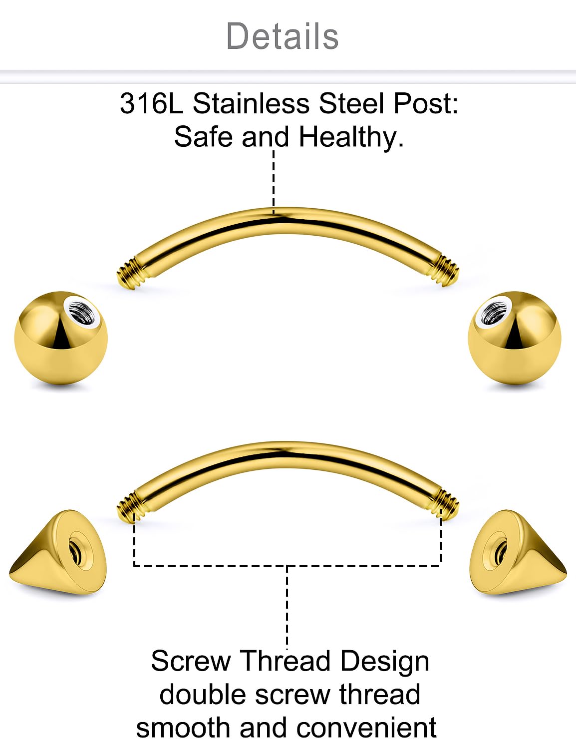 MATERIAL: Made of High Quality 316L Surgical Stainless Steel, Hypoallergenic body Jewelry, Safe for Sensitive Skin. Highly Polished Finishing and Strict Metal Electroplating Craft Makes Super Smooth and Shiny Surface.