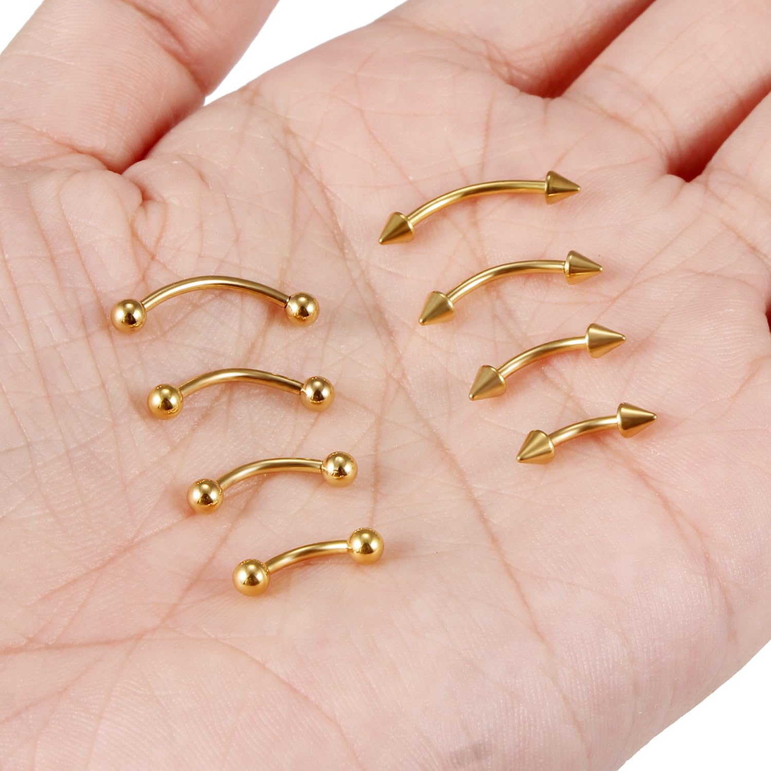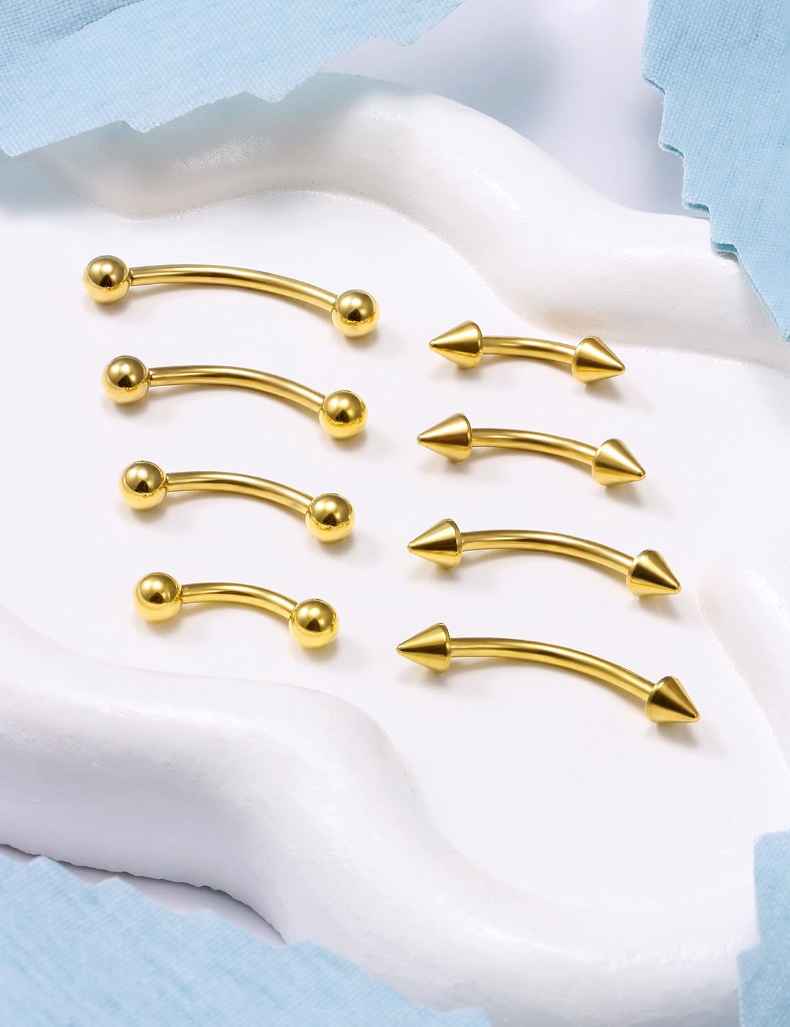 VALUE PACK: One Order Including 8 Pieces Curved Barbells Eyebrow Piercing Jewelry in 2 Styles(Ball and Spike, Each Style 4 Pieces). It Comes in a Velvet Pouch and the Different Sizes Make it Super Easy to Figure Out What You need to Use.