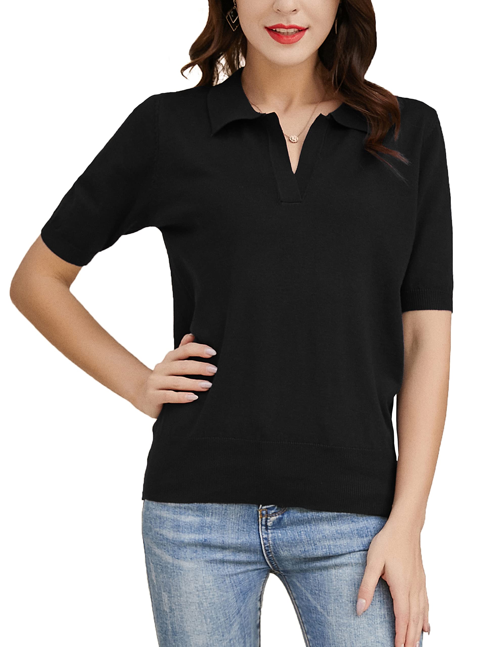 Features: V-neck short-sleeved, loose, casual, ribbed knit pullover. The classic lapel sweater never goes out of style