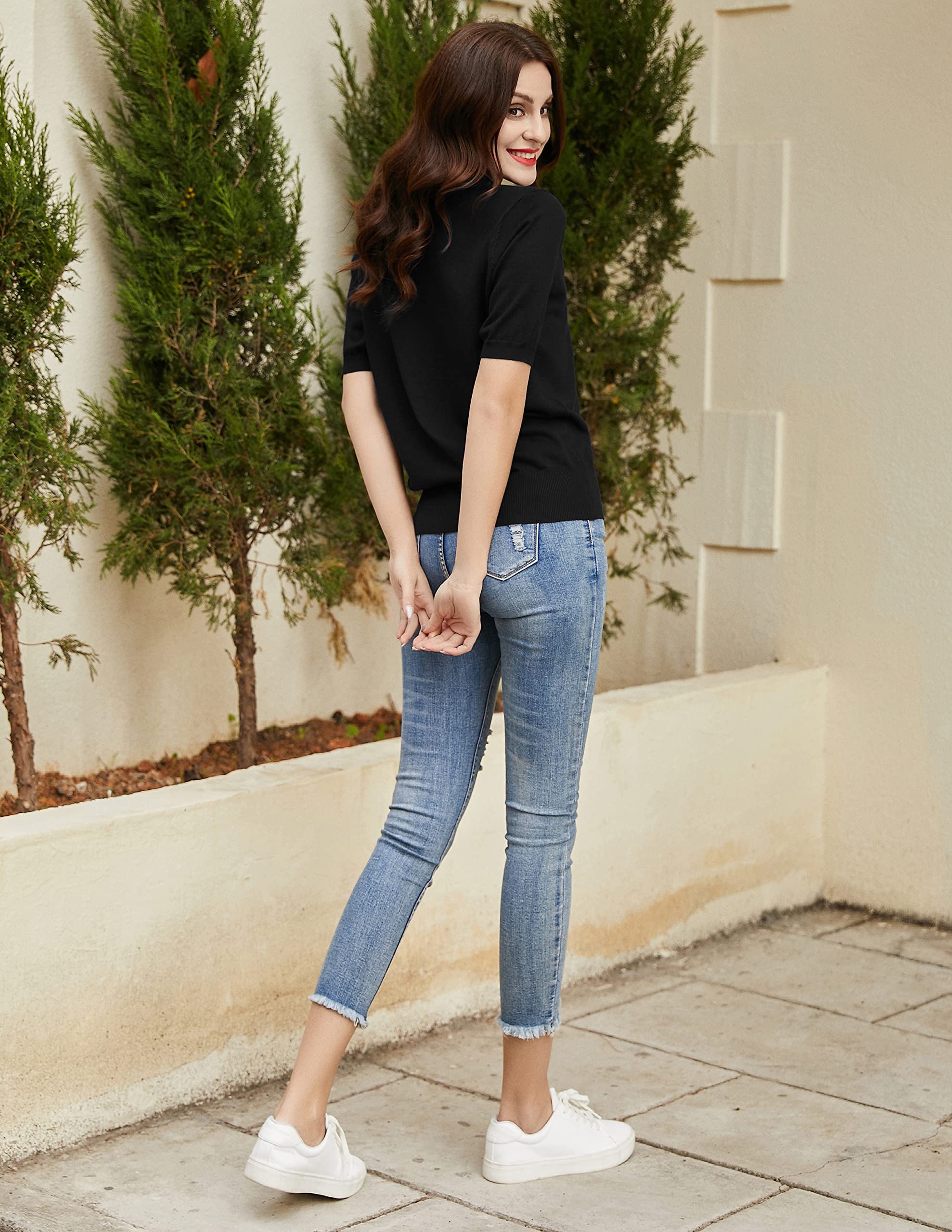 Material: soft, comfortable and stretchy ,this polo sweater is lightweight and breathable