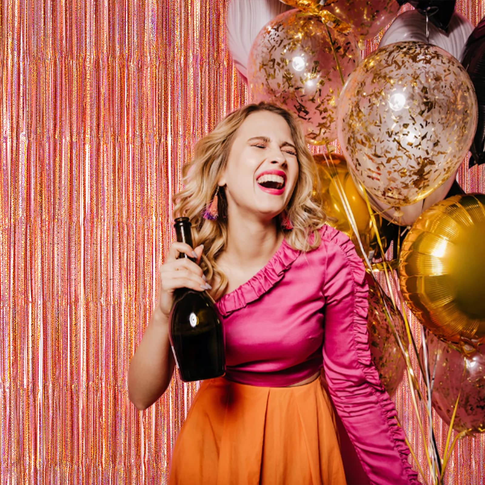 【Package Contains】2 packs glamorous metallic rose gold fringe curtains, each curtain size is about 3.2 feet wide by 8.2 feet long. With this classy rose gold fringe curtain backdrop, you can make an elegant entrance curtain for your guests. This shiny tinsel foil fringes curtain is a must-have accessory for your photobooth party, or to add some glamour to your event.