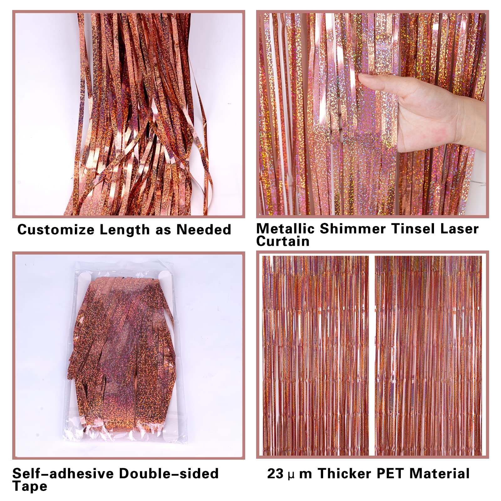 【High Quality】This rose gold tinsel backdrop is made of 23μm PET film material, durable and environmental protection, flexible and gorgeous when used as a room divider, window curtain wall decoration. This elegant and stunning rose gold fringe backdrop for party curtains decorations is perfect for photo booth, dessert and sweets table, champagne bars, Disco, door decoration, stage background, etc.