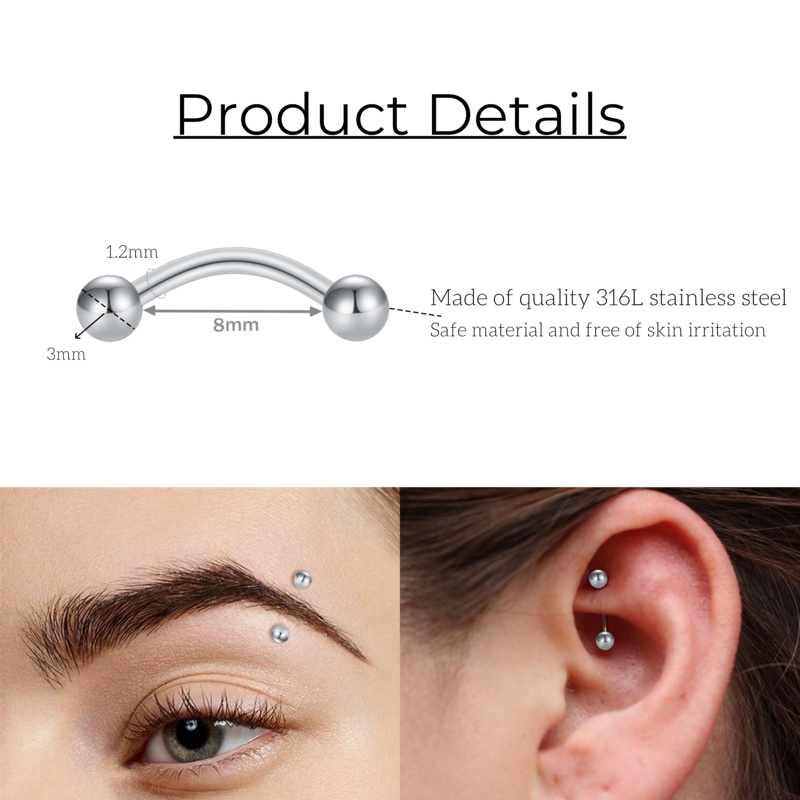 Multiple using: Can be used as rook ear rings, Cartilage earrings, Belly button rings, Eyebrow jewelry, Lip labret piercing jewelry, Daith conch helix tragus surface piercing jewelry and more.