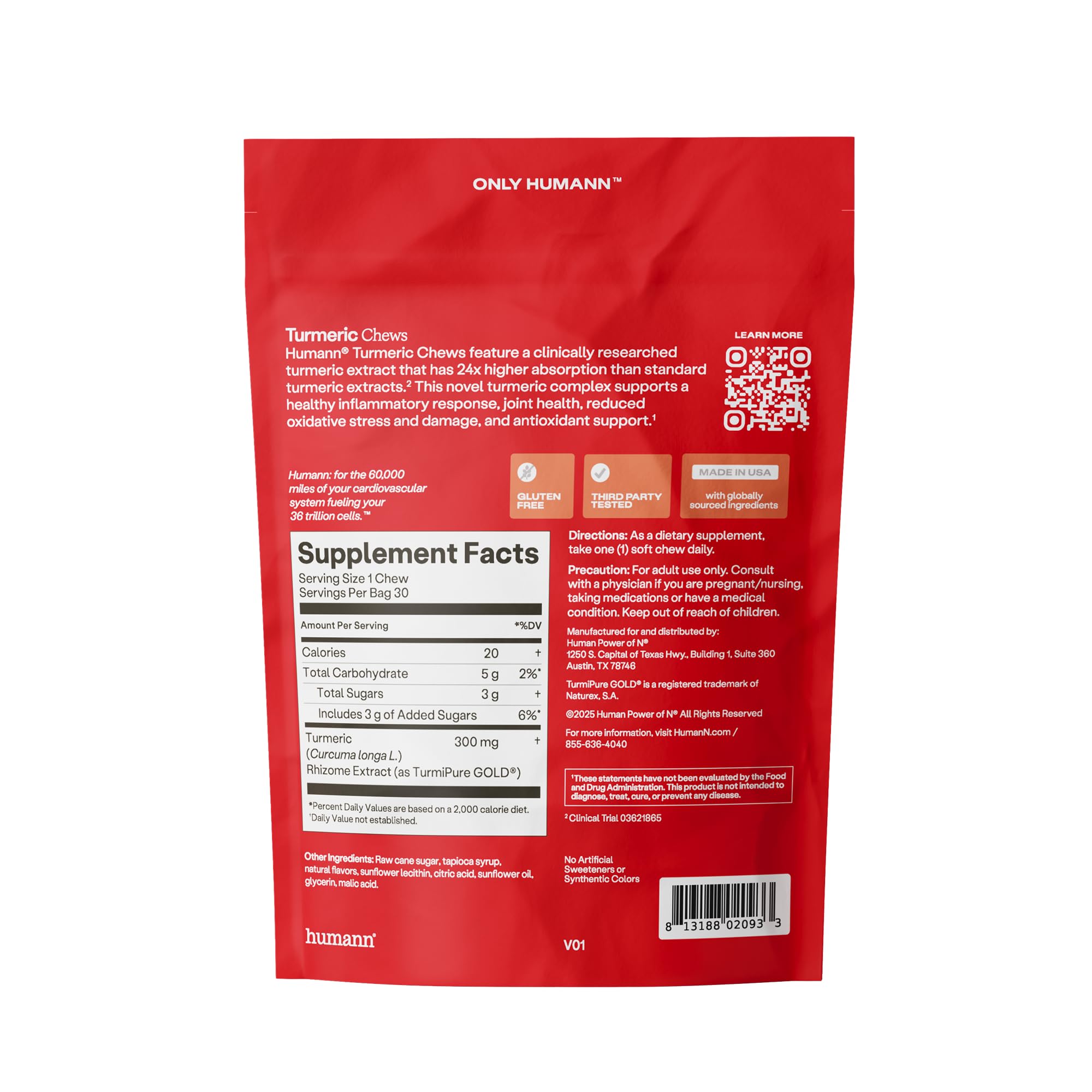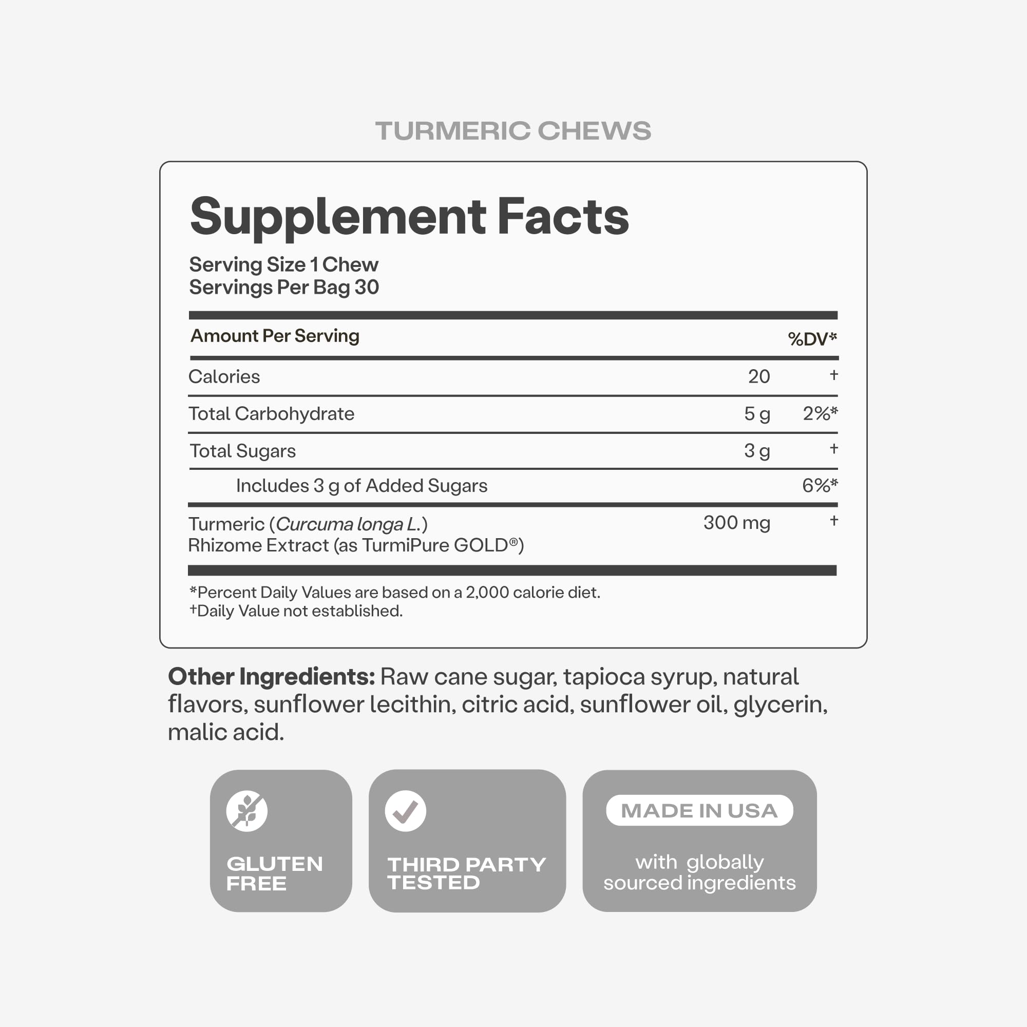 Each single serving turmeric supplement chew provides 300mg of TurmiPure Gold turmeric extract.