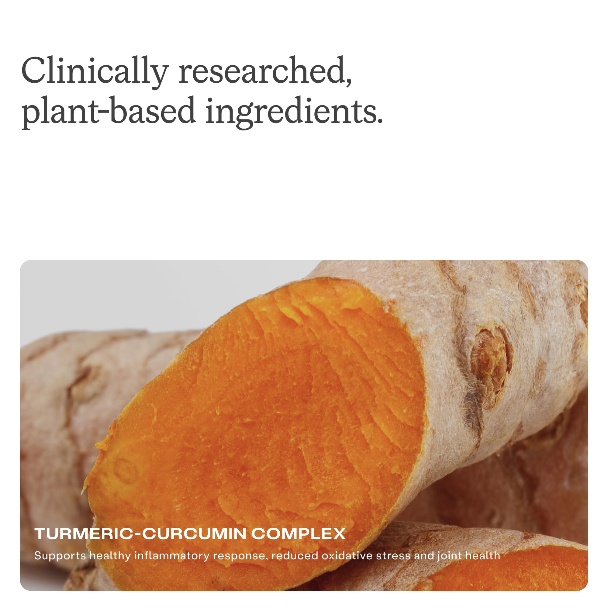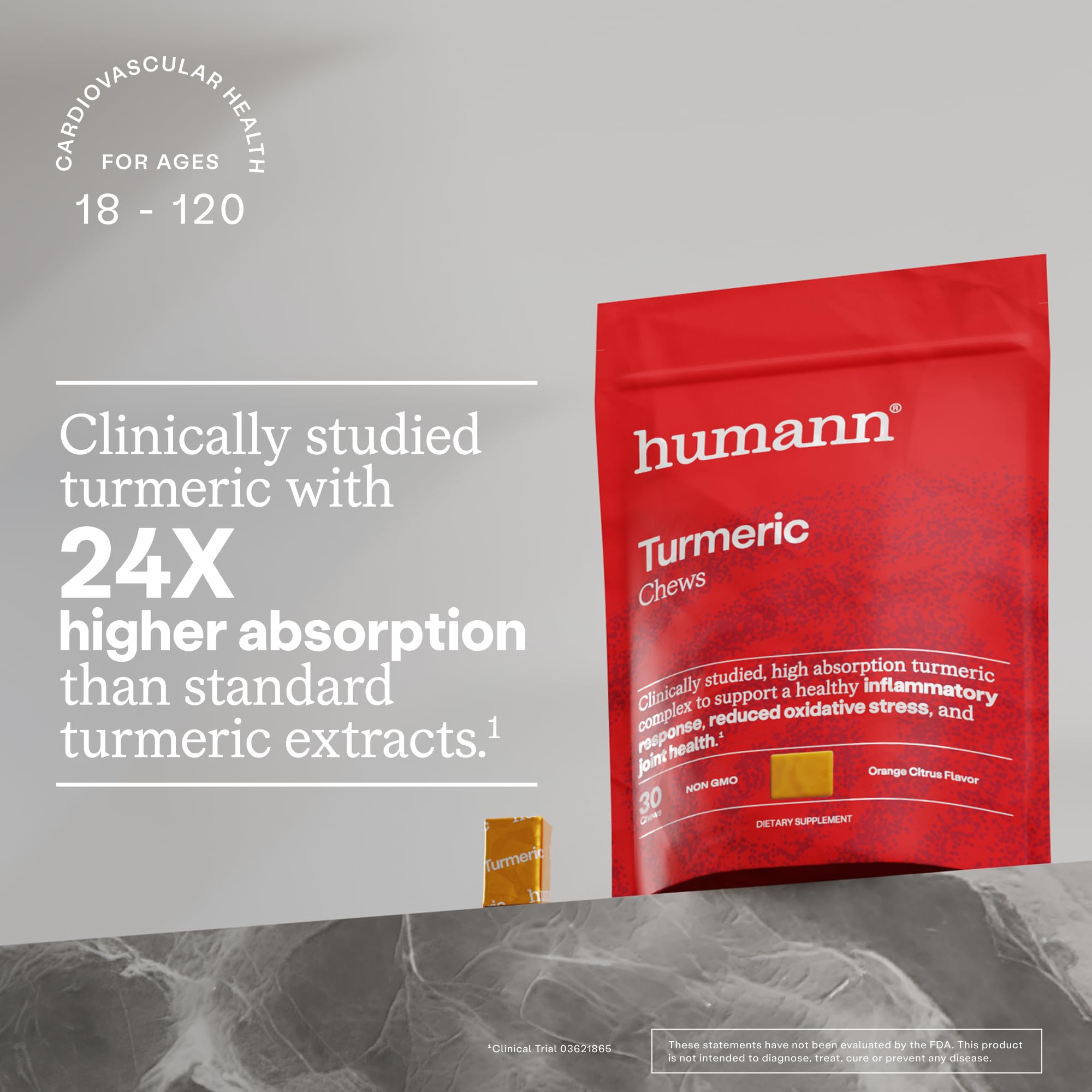Our clinically studied turmeric-curcumin complex in our Turmeric Chews is shown to have 24 times higher absorption that conventional turmeric ingredients.