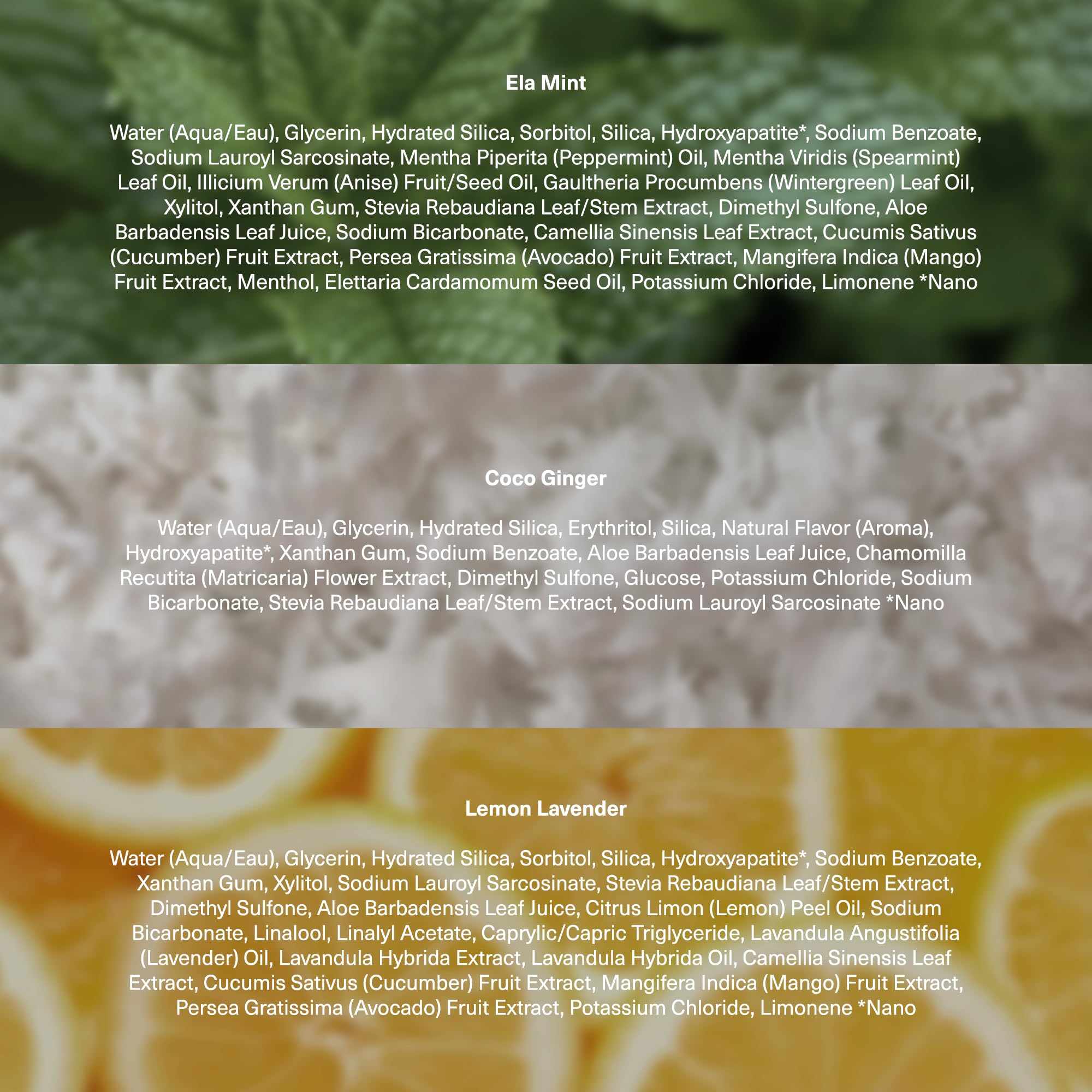 ENAMEL CARE: Our proprietary and innovative formula includes Nano-hydroxyapatite (n-Ha) - a biomimetic mineral form of the same ingredient that naturally makes up 97% of your enamel and 70% of your dentin. n-Ha has been the subject of significant research for decades with a wide variety of potential benefits across dentistry and oral care.