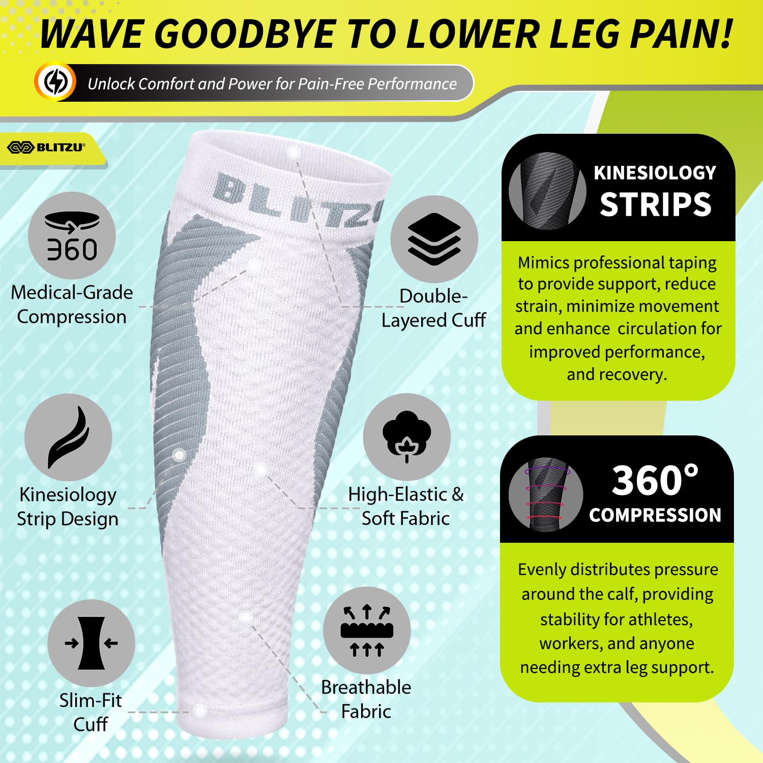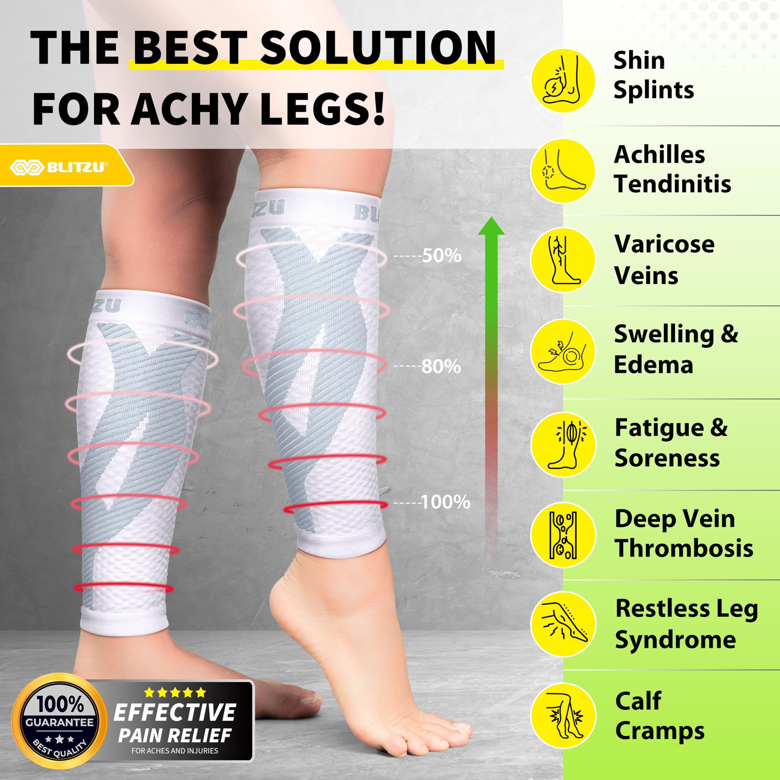 Effective Compression for Swelling & Varicose Veins Relief: The BLITZU Calf Compression Sleeves feature graduated compression to improve blood circulation, reduce swelling, and alleviate discomfort caused by varicose veins and pregnancy-related leg swelling, making them perfect for nursing mothers and individuals with circulation issues.