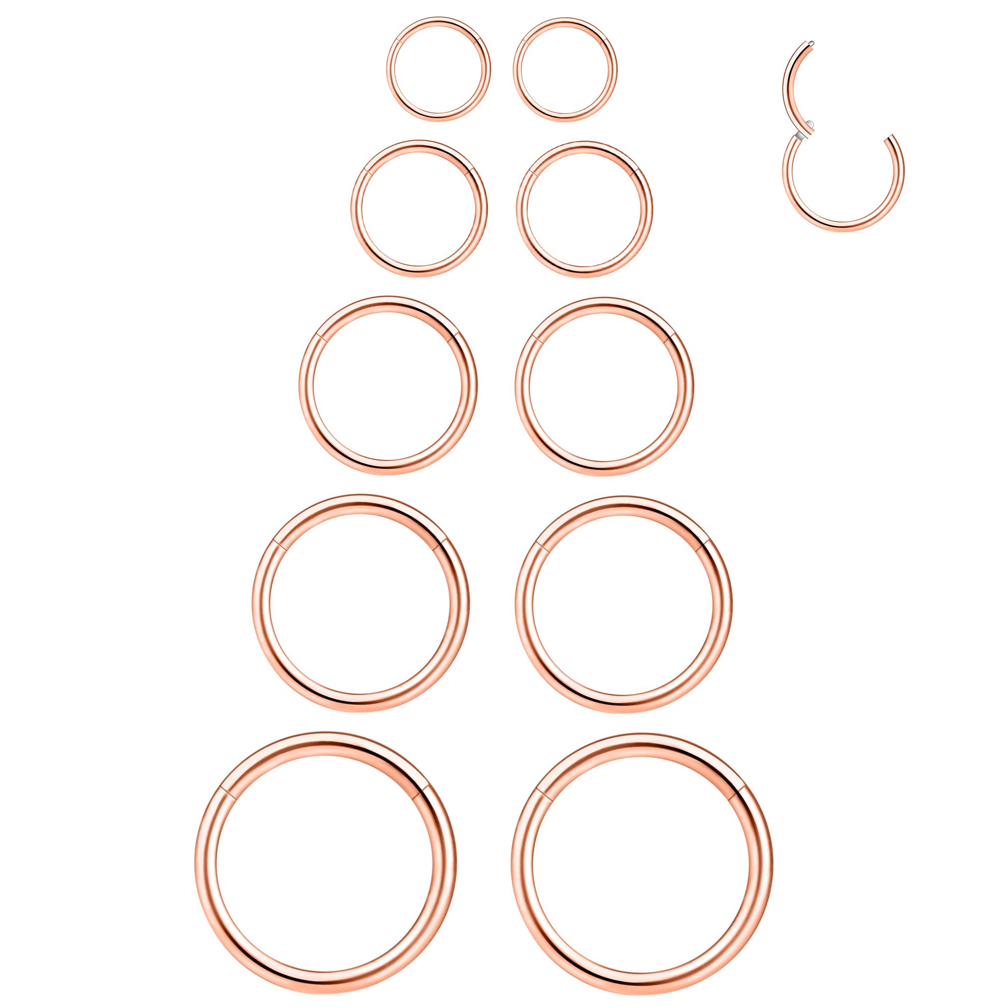 【7 PAIRS of 16G HORSESHOE RINGS SET in DIFERENT SIZES】Regular gauged: 16Ga/1.2mm, Ball size : 3mm, Inner diameter of hoops from 6mm, 7mm, 8mm, 9mm, 10mm, 12mm and 14mm; Different size of small body piercing jewelry multipack for multiple pircing, Good chioce for septum, smiley, nose, nostril, lip and labret piercing, Also practical as cartilage earrings, helix earrings, tragus earrings, rook earrings and daith earrings