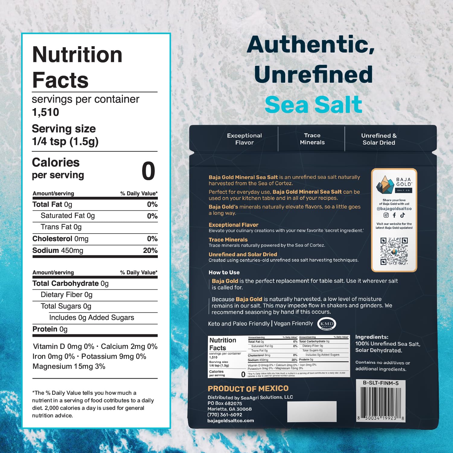 NATURAL UNREFINED SEA SALT – Baja Gold Mineral Sea Salt is carefully harvested to retain its natural trace minerals. Unlike processed salts, this sea salt delivers a clean, fresh taste, perfect for cooking and baking.