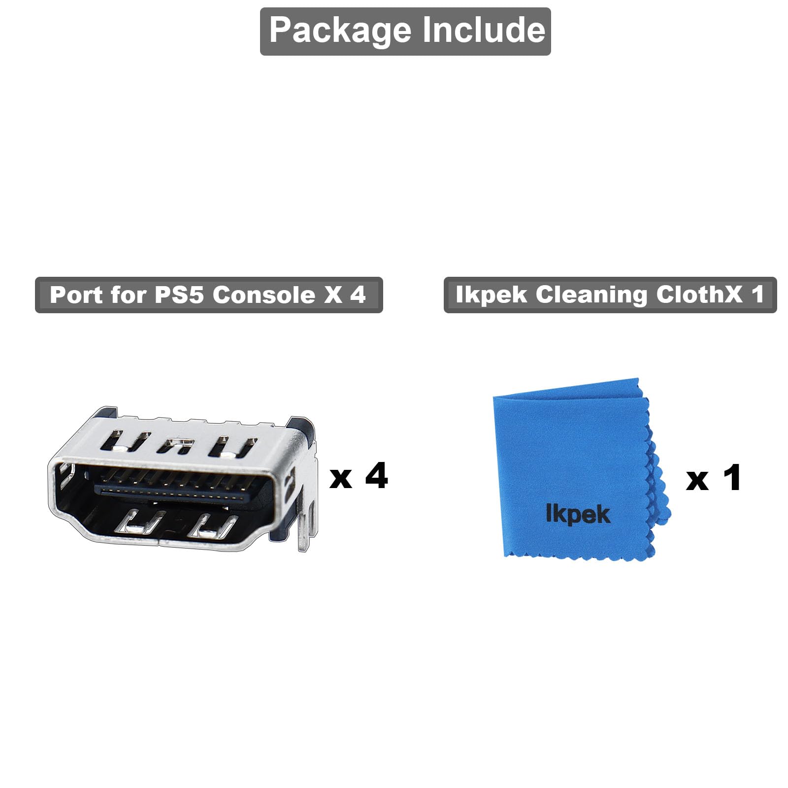 Package Include -- 4 x Hdmi-Port for PS5 Console, 1 X Cleaning Cloth.