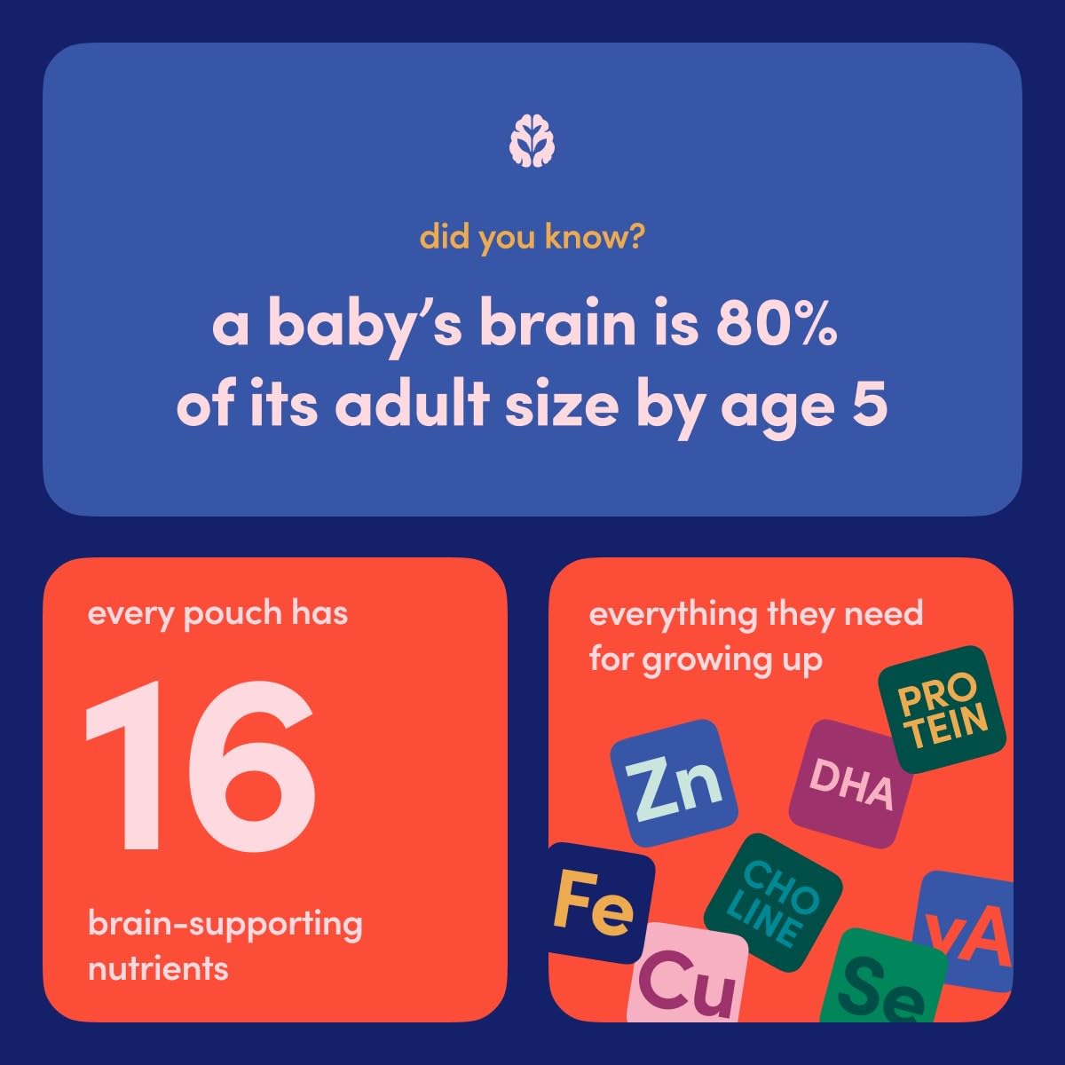 16 BRAIN-SUPPORTING NUTRIENTS β Baby pouches with potassium, iron & vitamin A to fuel healthy brain and body development