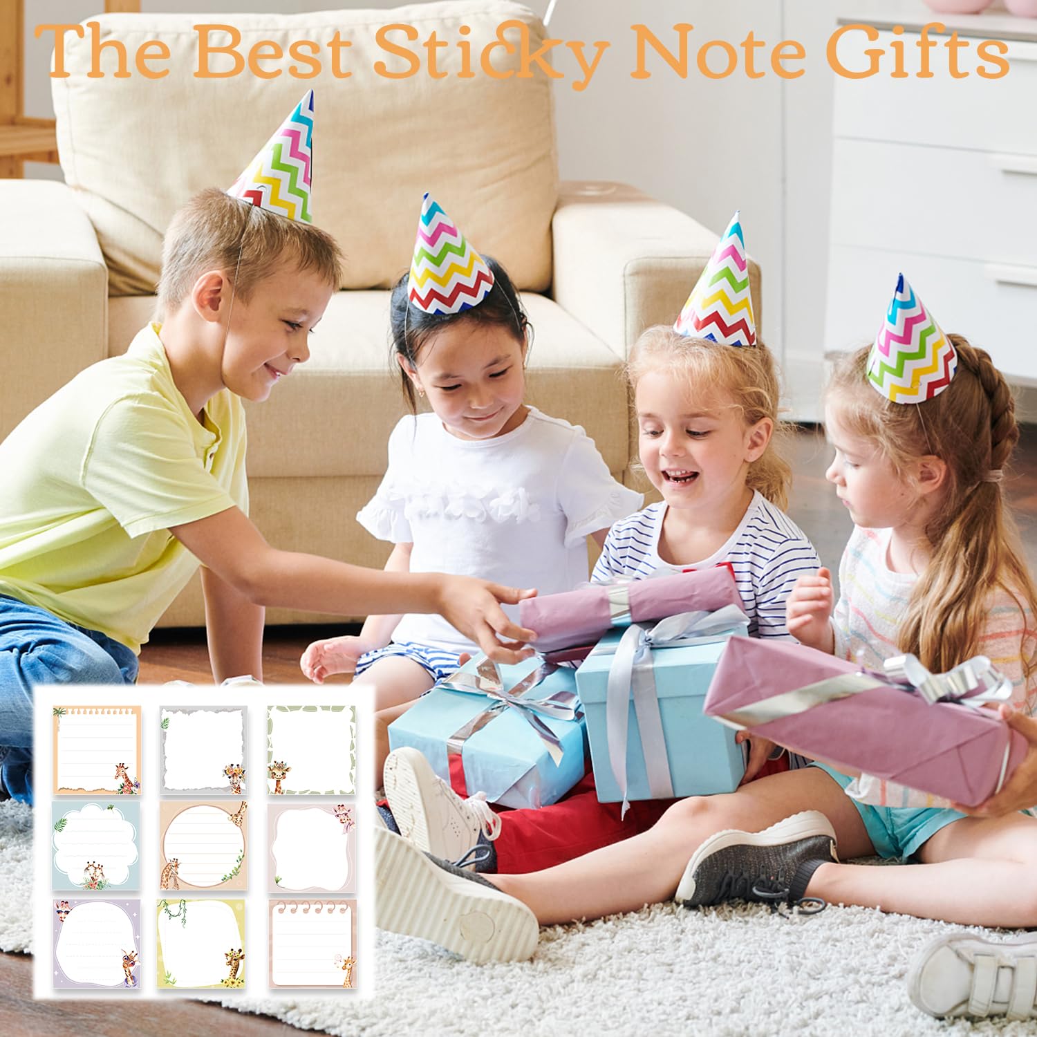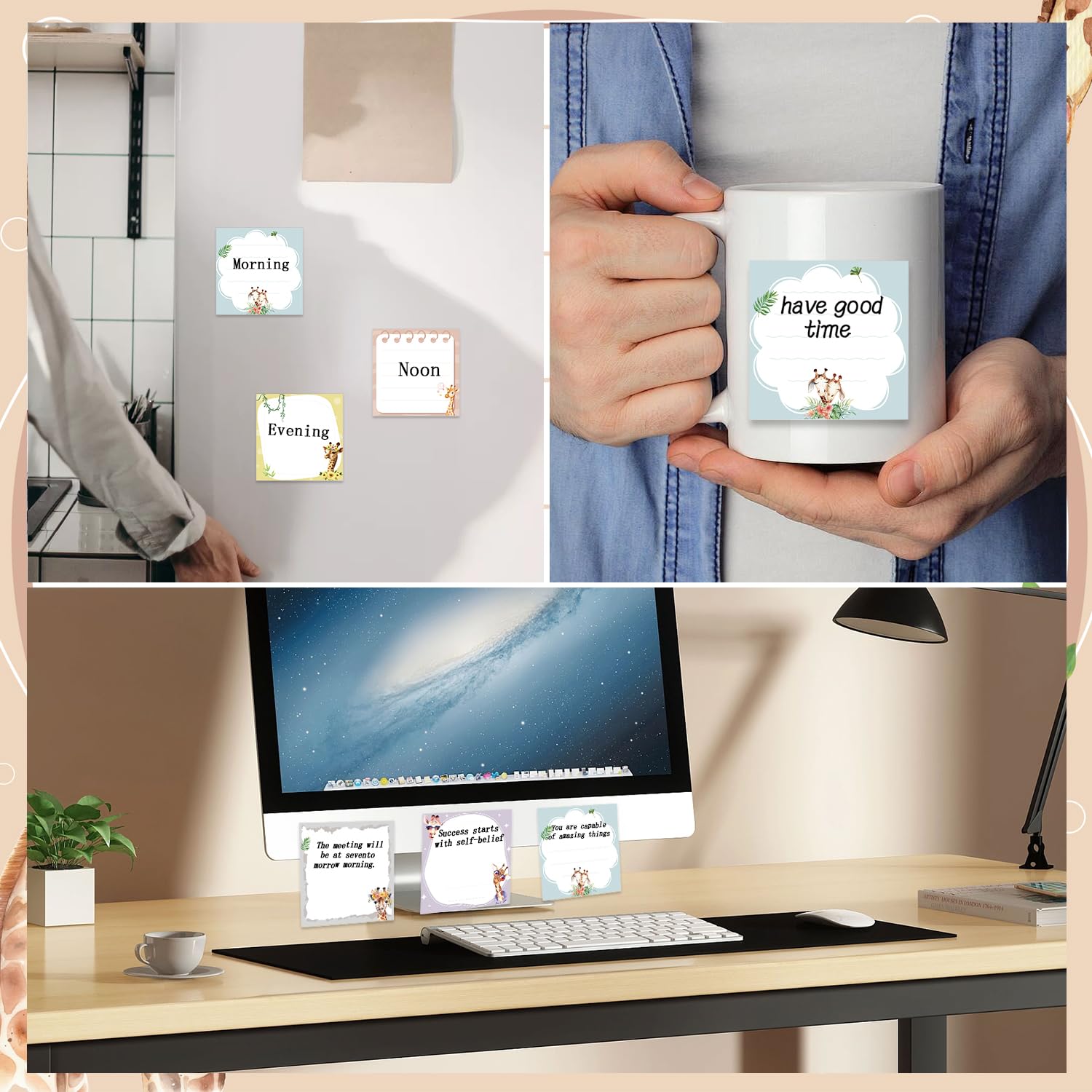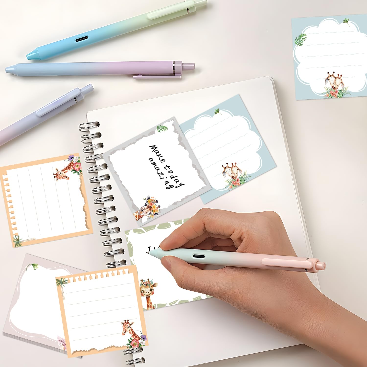 Design & Size: The sticky notes feature charming cartoon giraffe designs that add a playful touch to your memos. Their 3x3 inch size offers ample writing space and fits easily into planners, notebooks, or bags