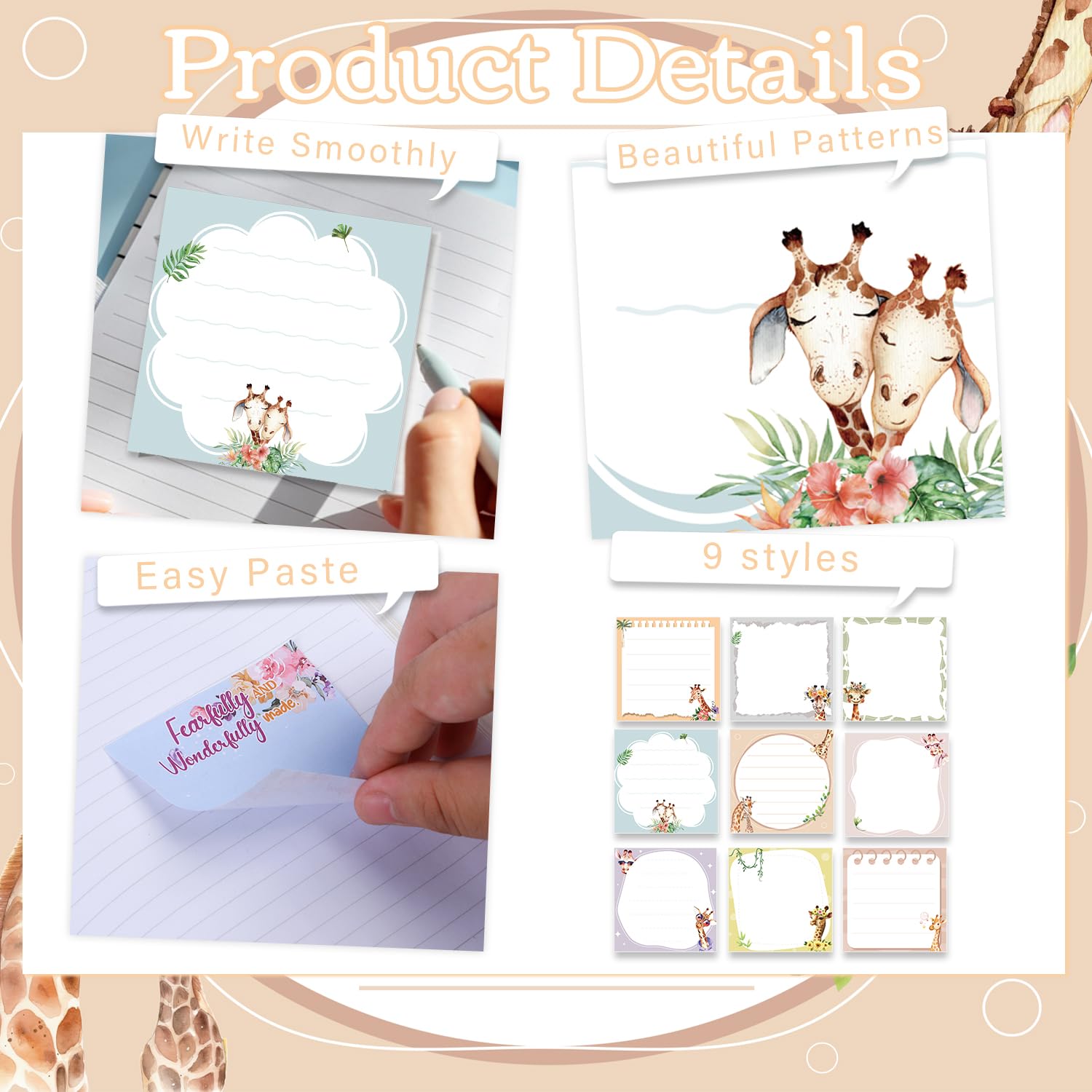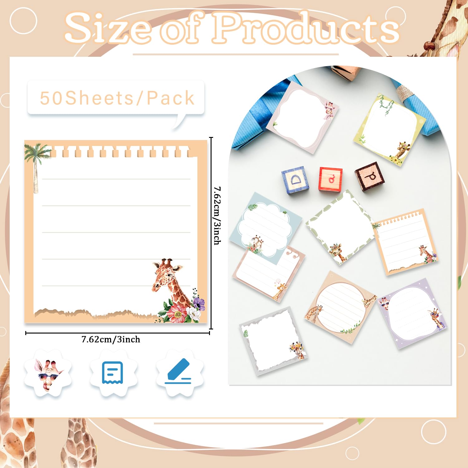 What You Get: You will receive 9 pads of giraffe themed sticky notes, each measuring 3x3 inches (7.62x7.62 cm). Every pad includes 50 sheets, giving you 450 sheets in total. These fun notepads are great for everyday notes and reminders