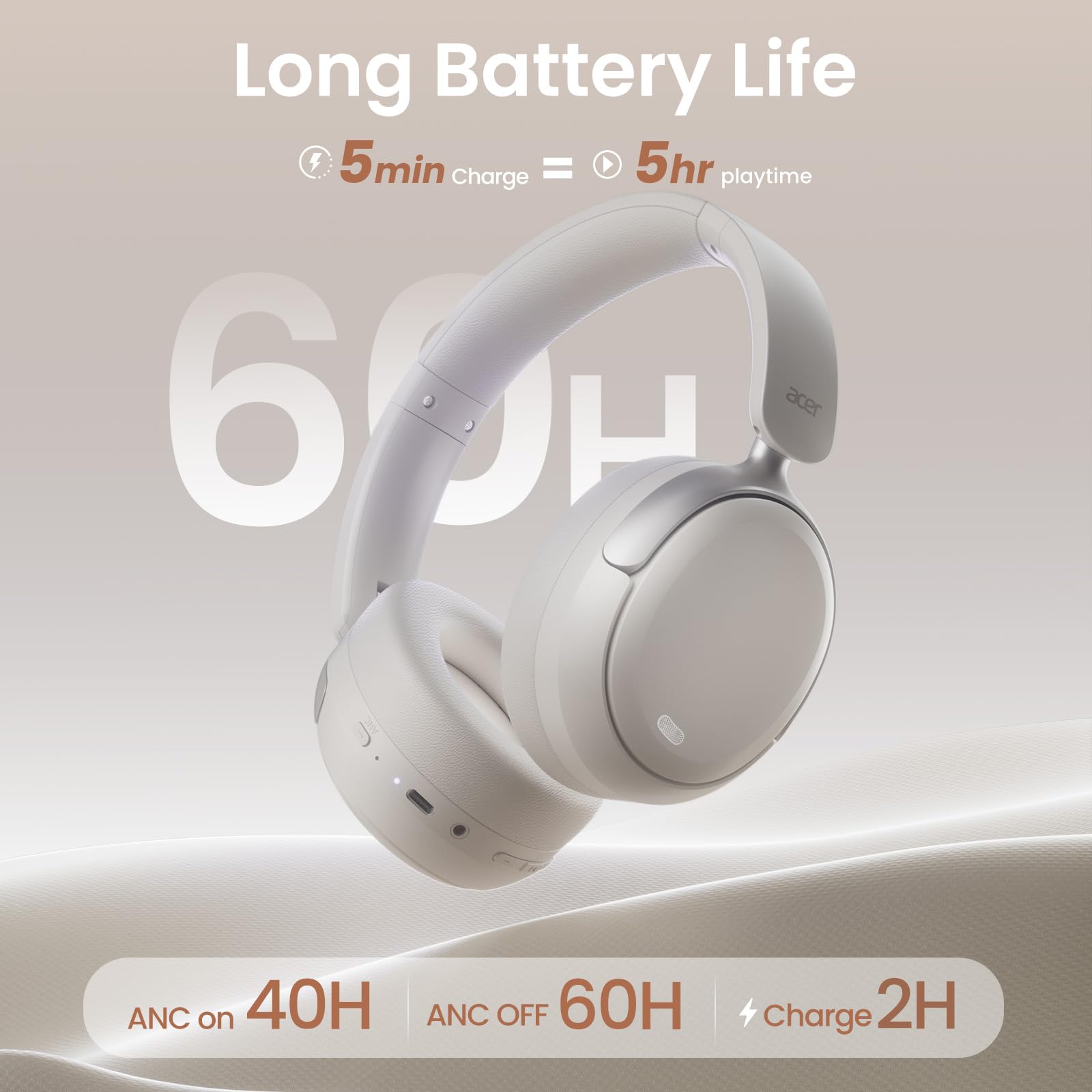 EXTENDED BATTERY life – a full charge provides up to 60 hours of playback time with active noise cancellation off (40 hours with active noise cancellation on). A quick 2-hour charge via USB-C is enough for several days of travel or work use.