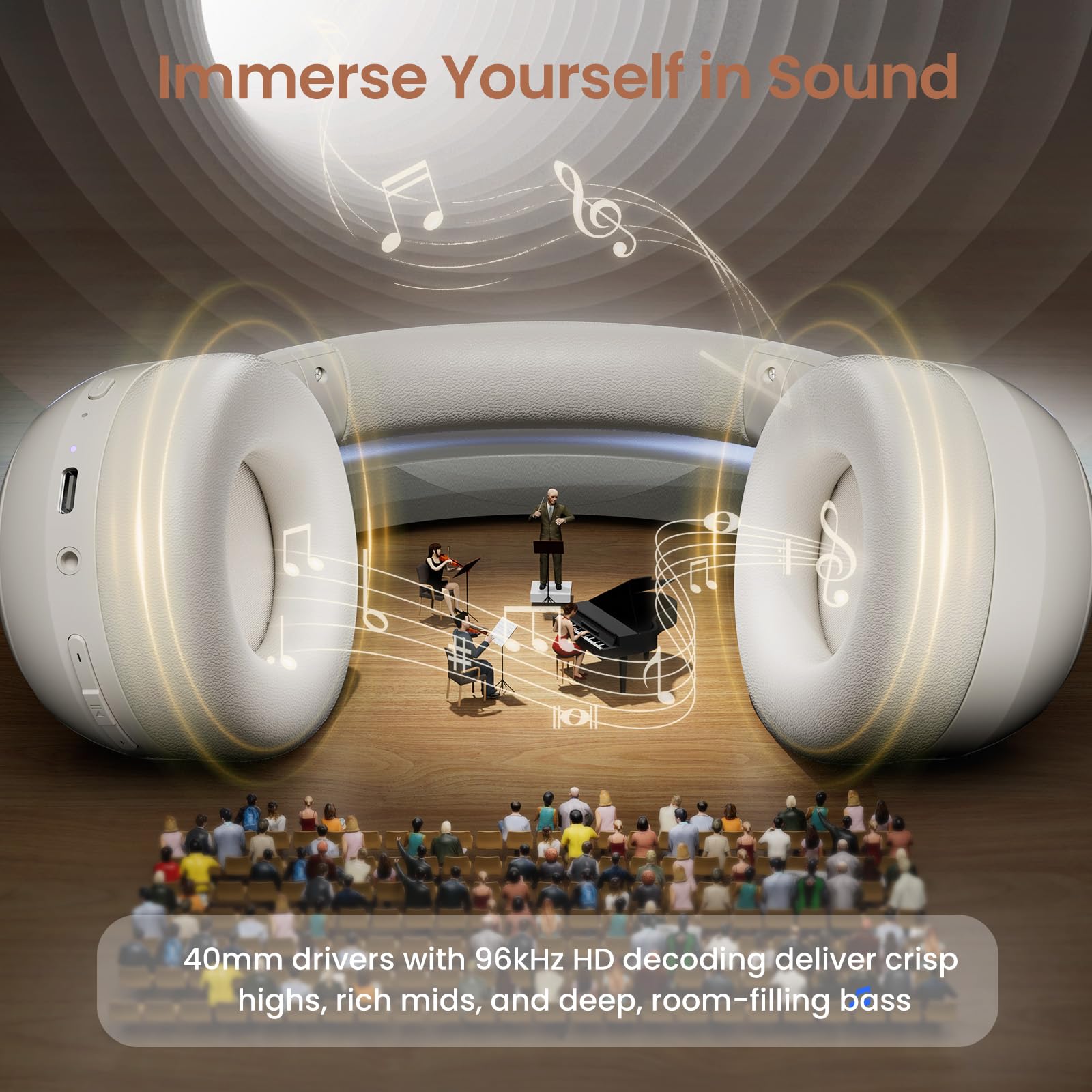IMMERSIVE LISTENING - These Bluetooth headphones feature custom-tuned 40mm drivers that deliver powerful, deep bass, clear mids, and crisp treble. Enjoy richly detailed sound whether you're listening to music, watching movies, or making calls.