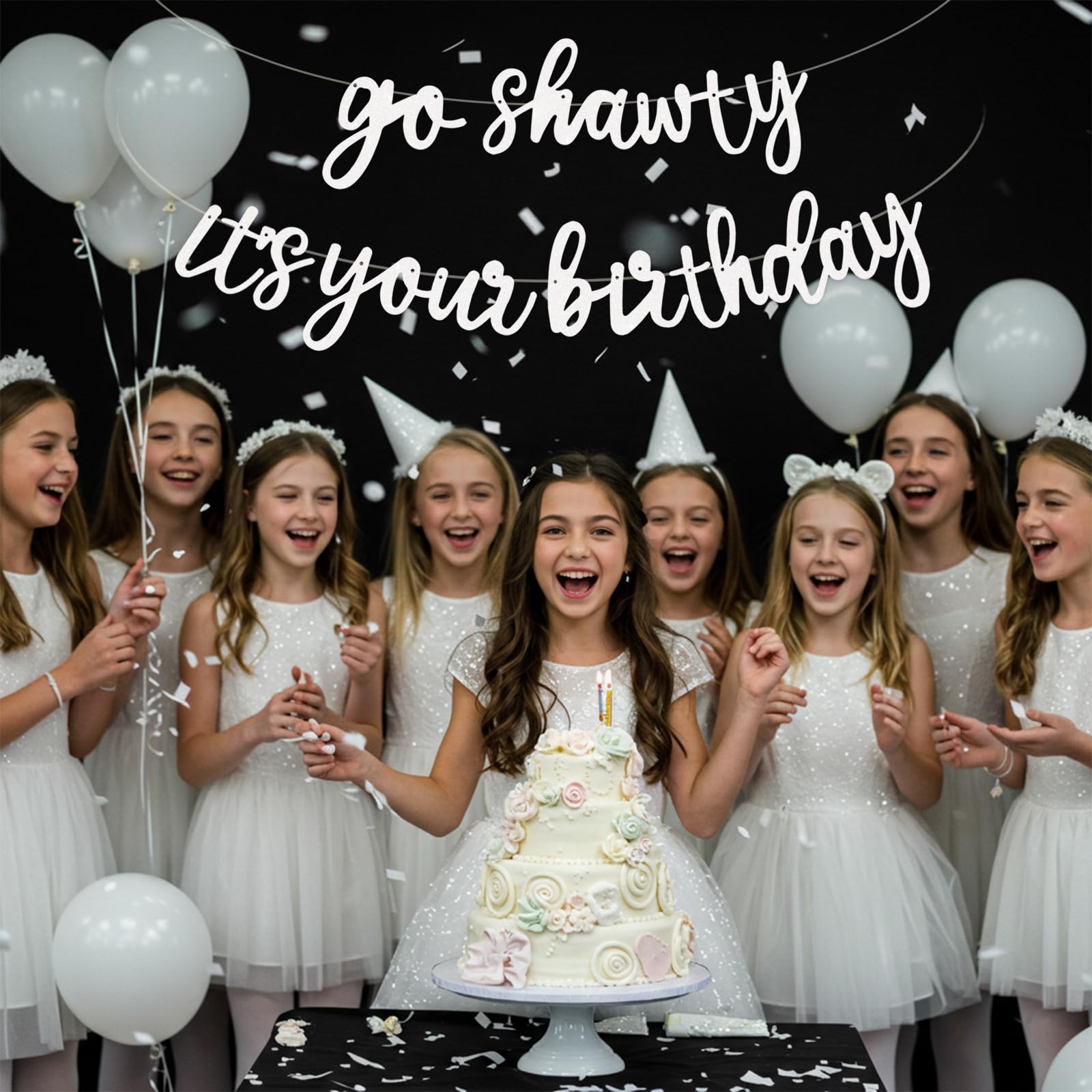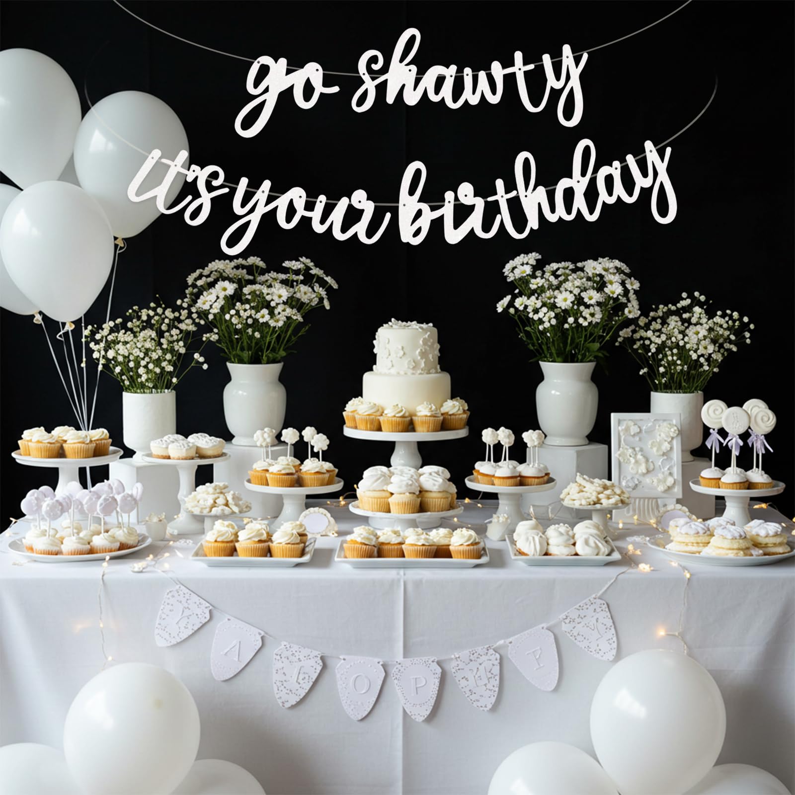 Product includes : A Glitter NO DIY Go Shawty It's Your Birthday Banner is included in our product. It is a very convenient birthday banner that can save your time and decorate your birthday party very well.